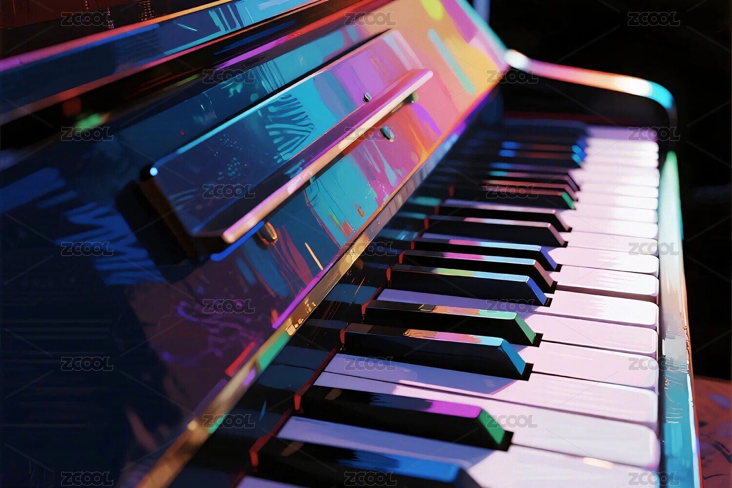 紫色灯光钢琴键盘近景特写