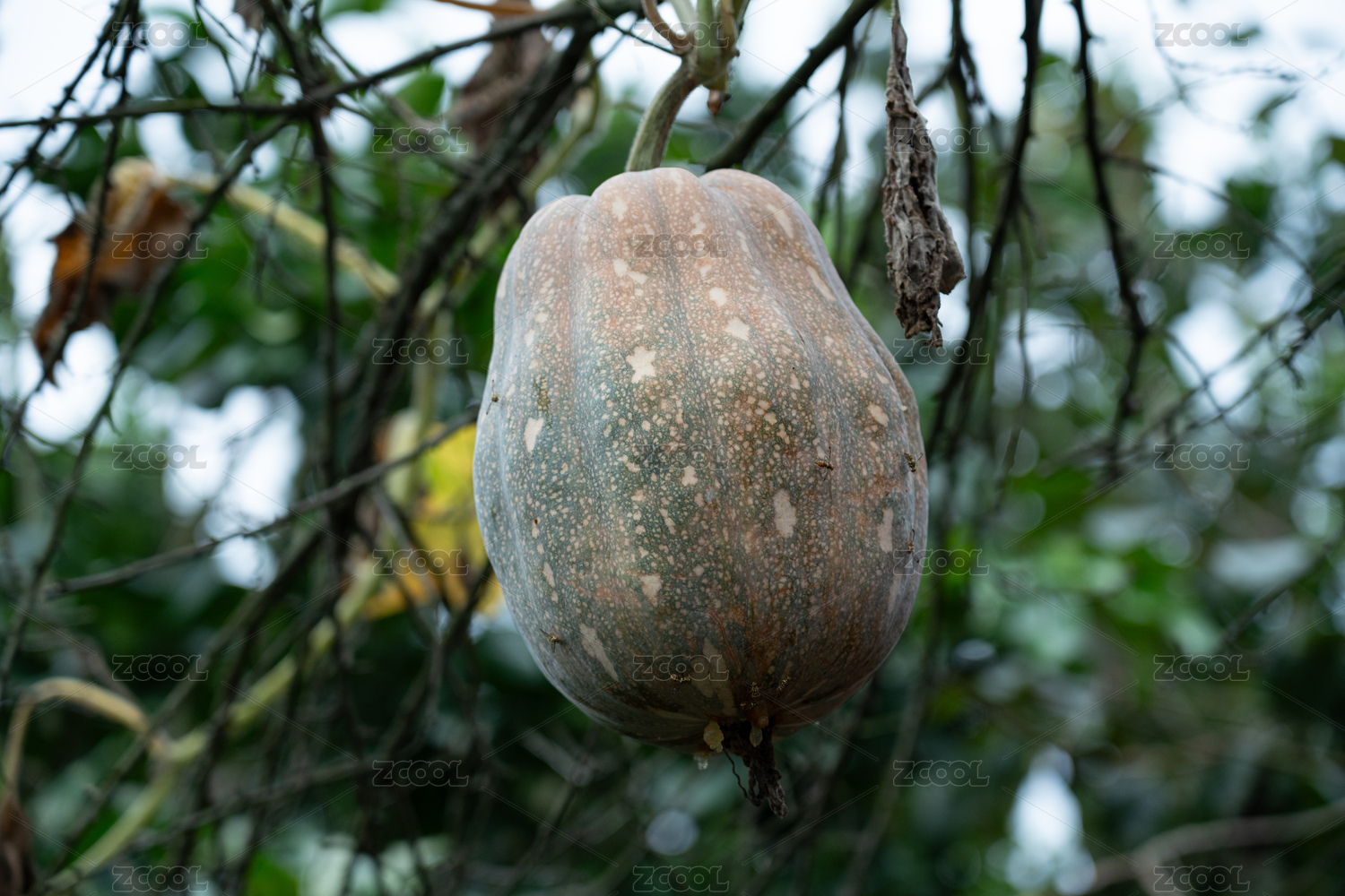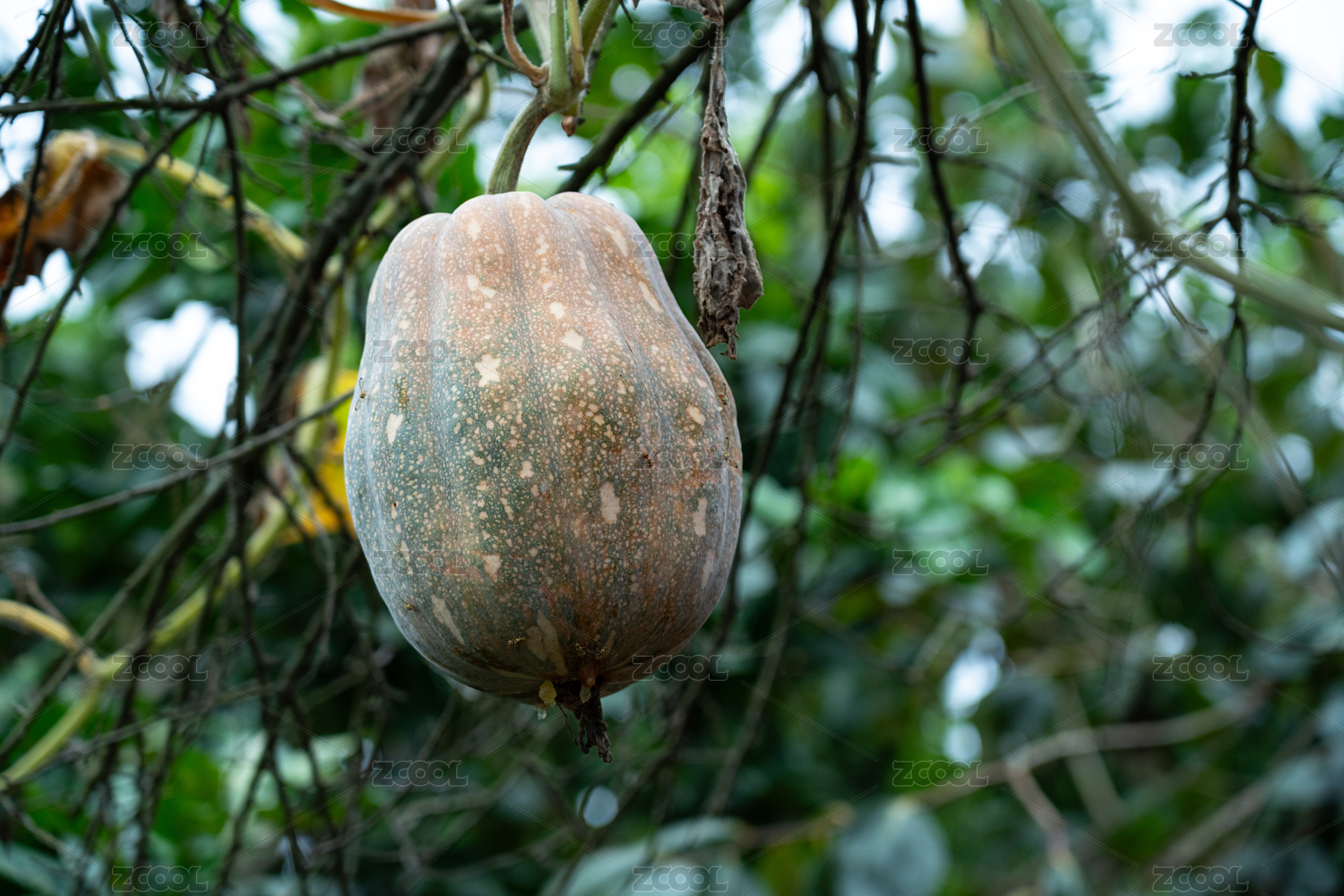 树枝藤蔓上挂着的南瓜作物
