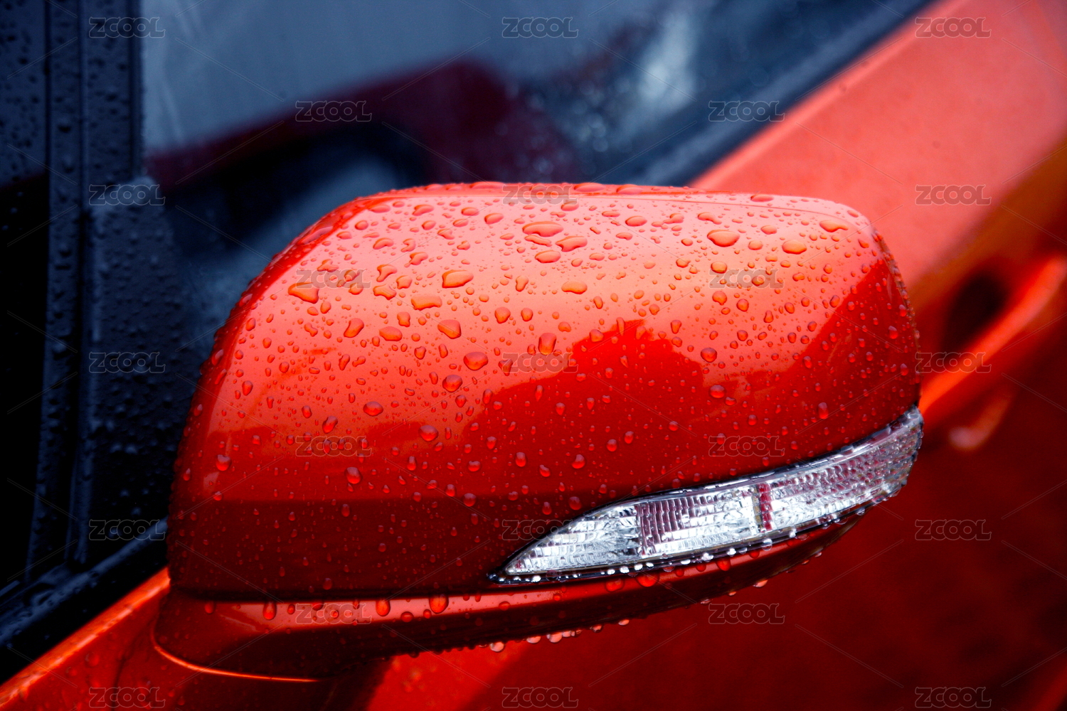 红色轿车的后视镜
