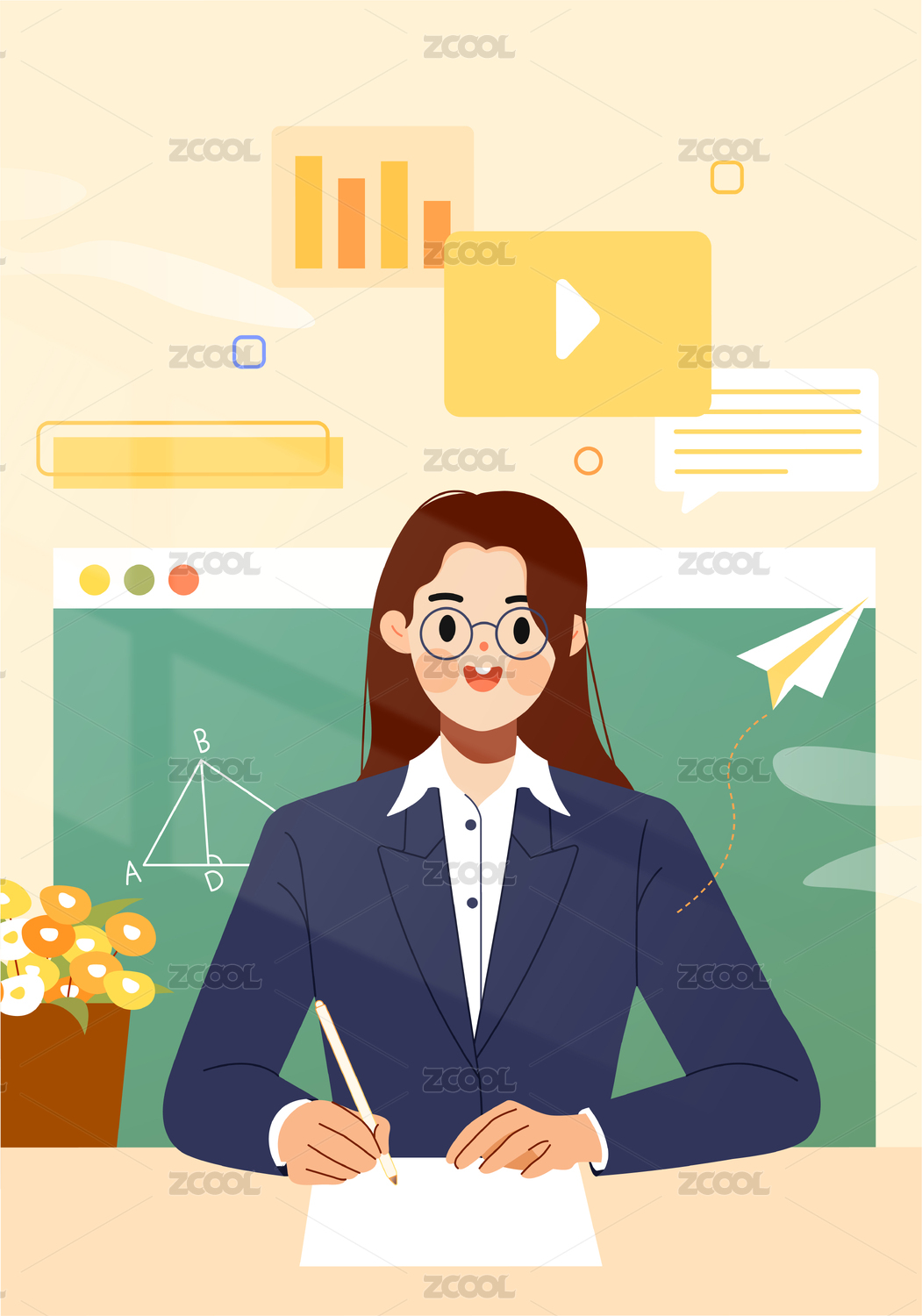 数学教师课堂授课讲解插画场景