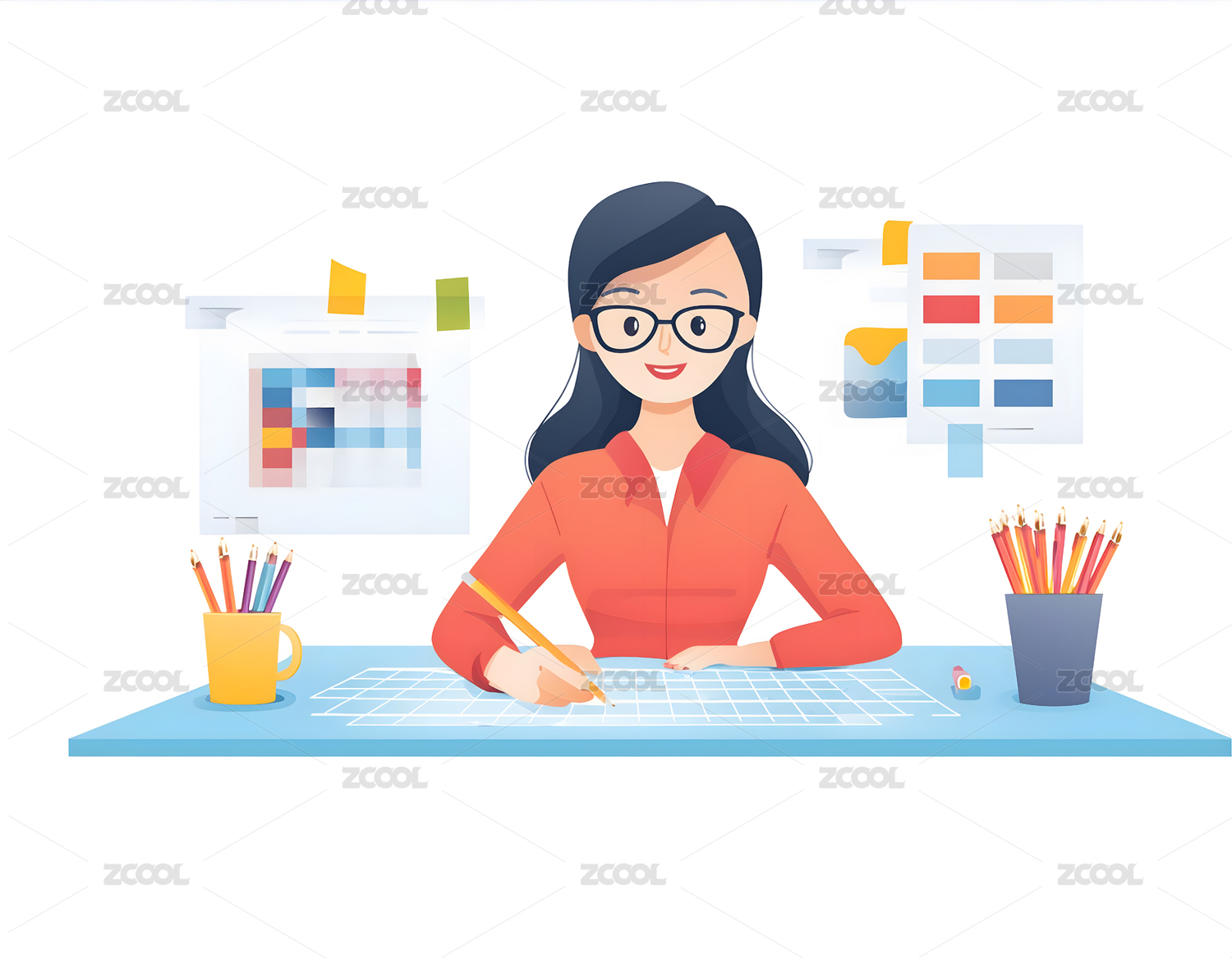 教师备课工作场景插画