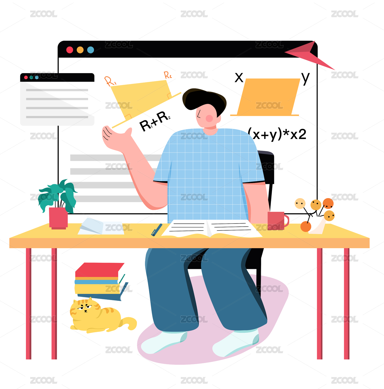 在线直播辅导数学插画