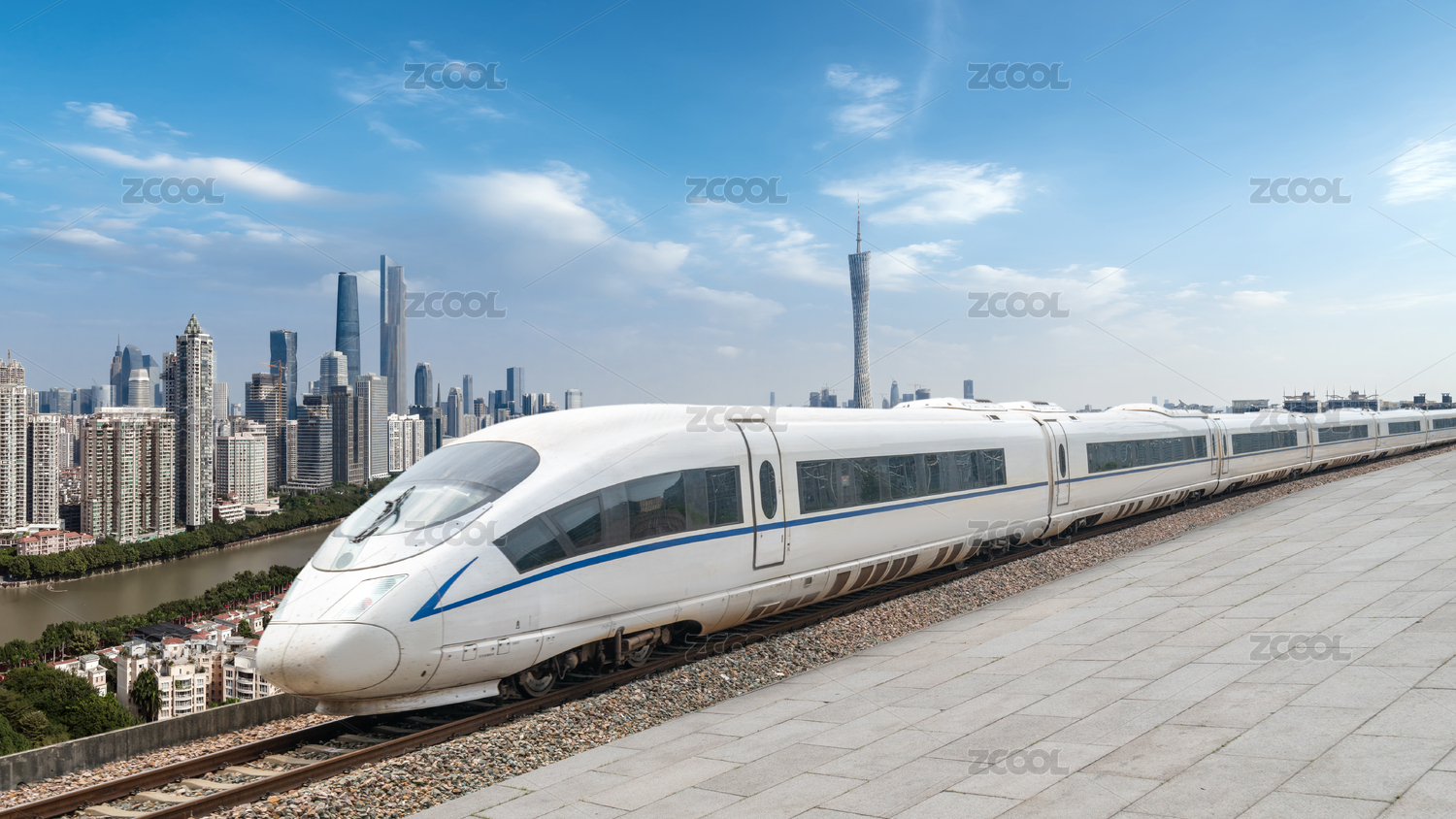 高速列车和广州城市风光