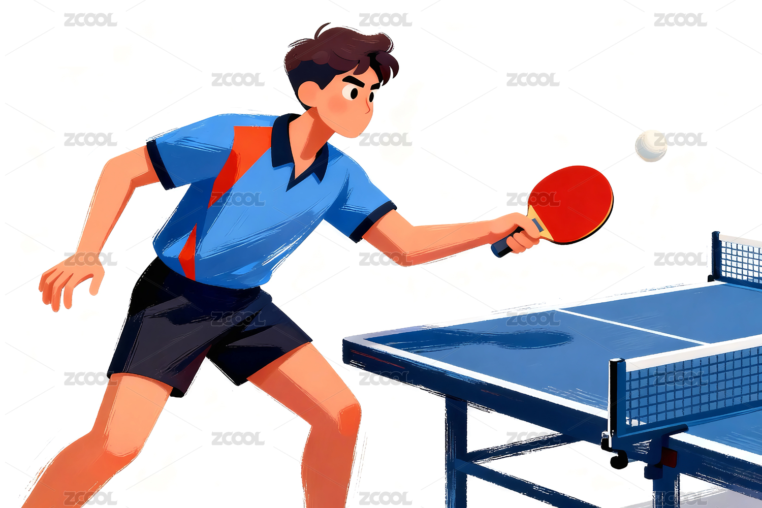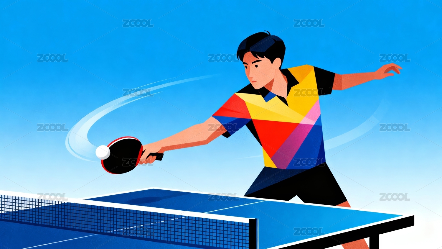 乒乓球,运动员,乒乓,多彩,色彩,插画,AIGC202401