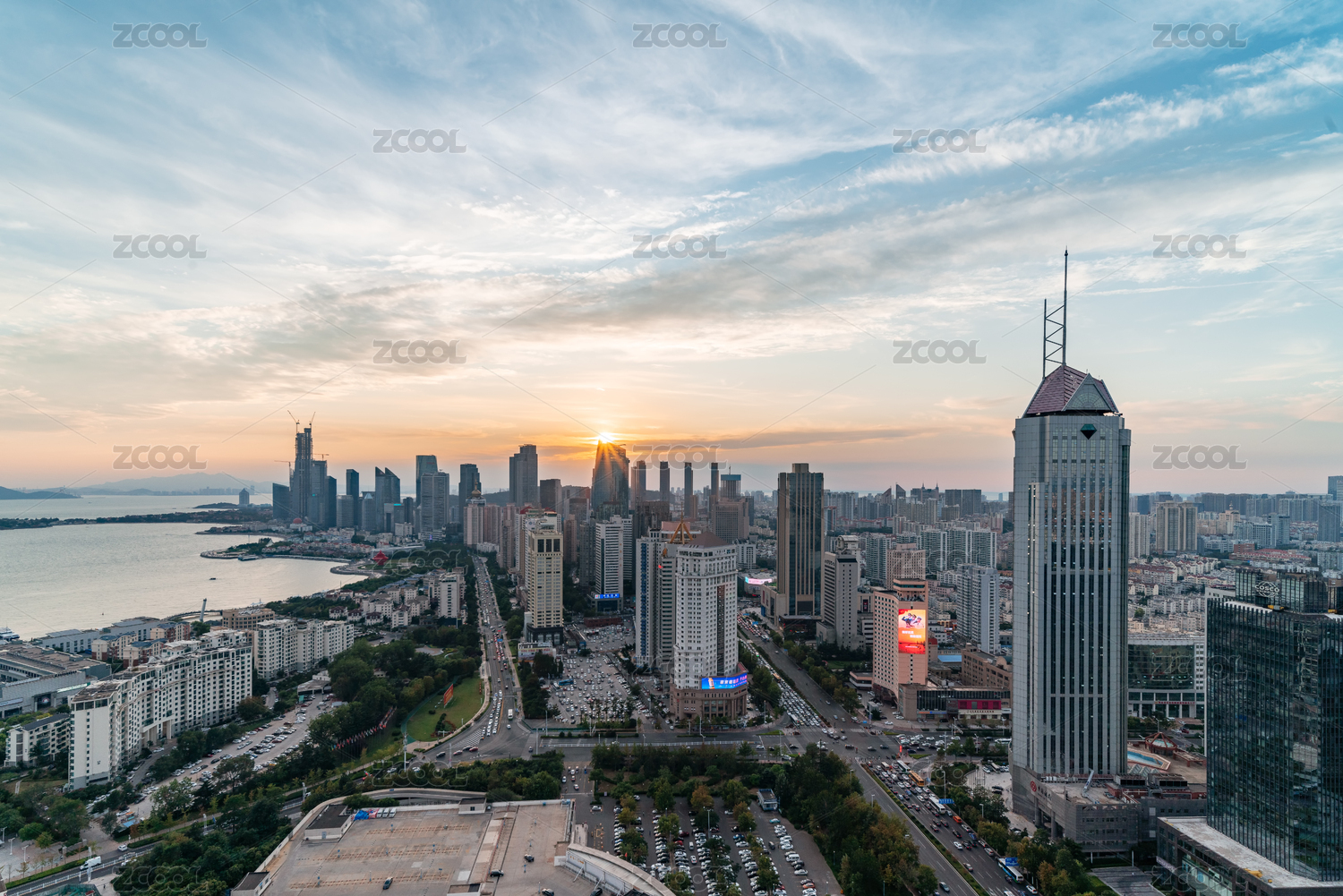 海南省海口市滨海大道城市建筑夕阳风光航拍