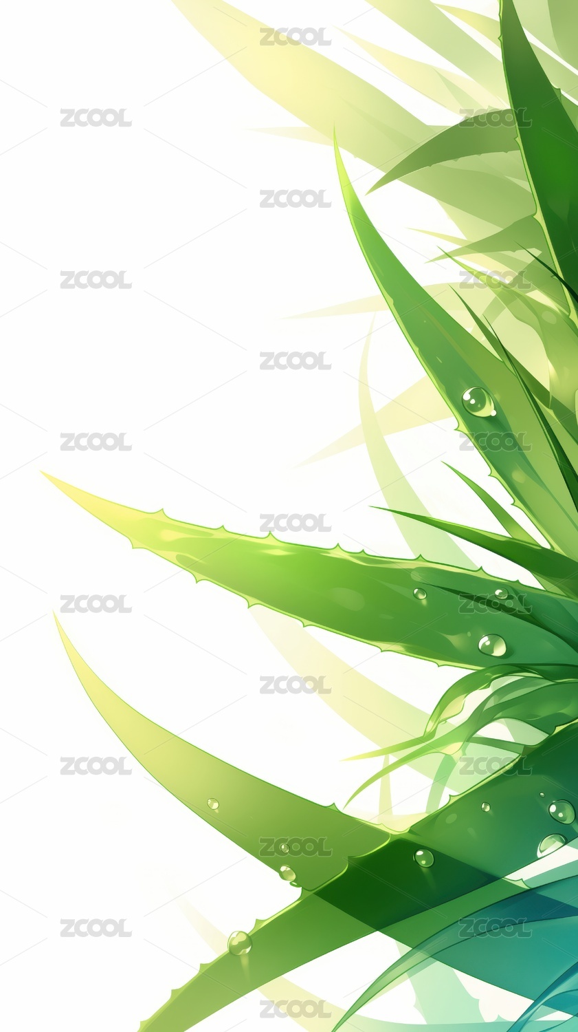 清新明亮有流动水珠的芦荟叶3D立体插画