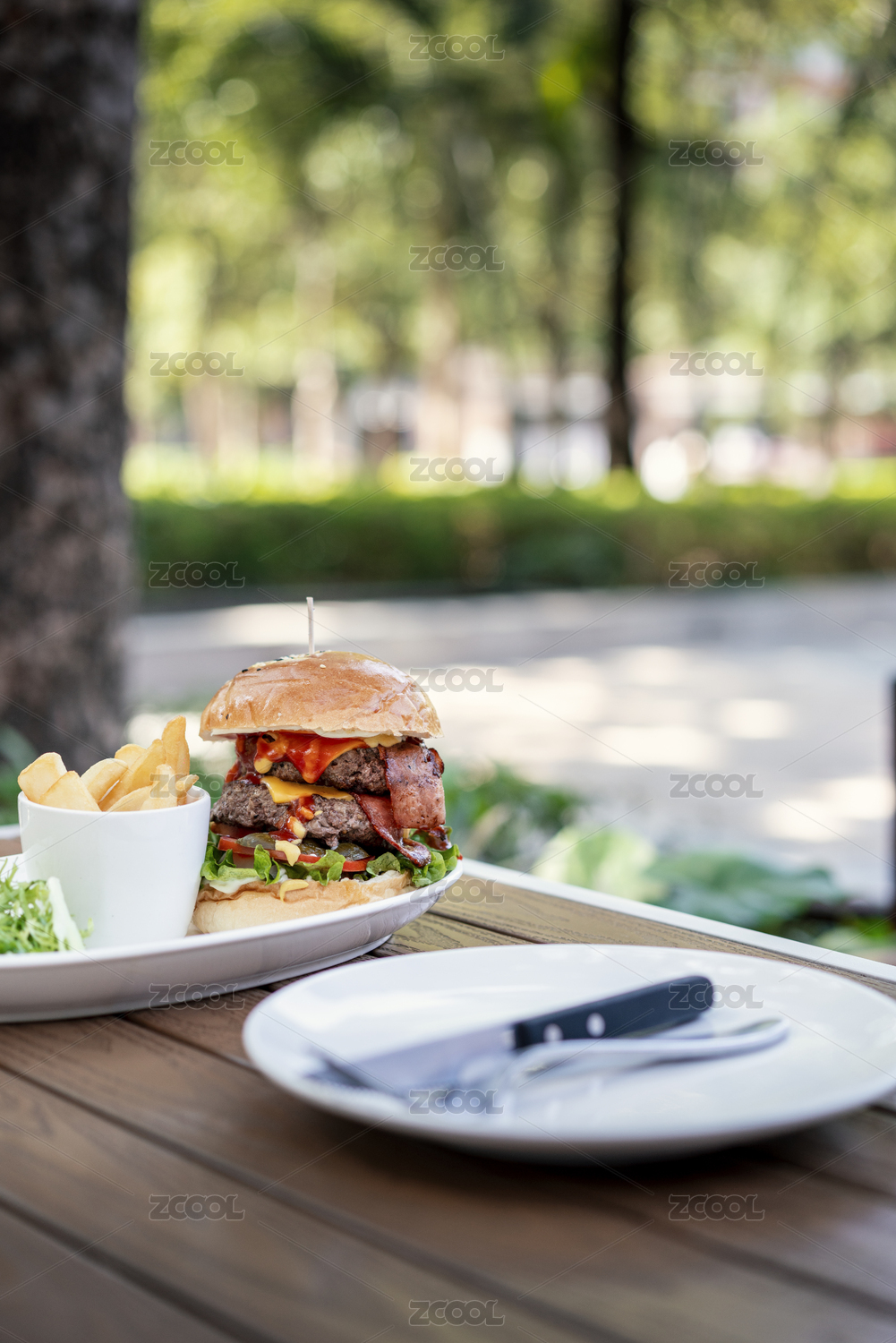 刀,午餐,莴苣,饮食,西红柿,奶酪汉堡,餐馆,美味,桌子,无人