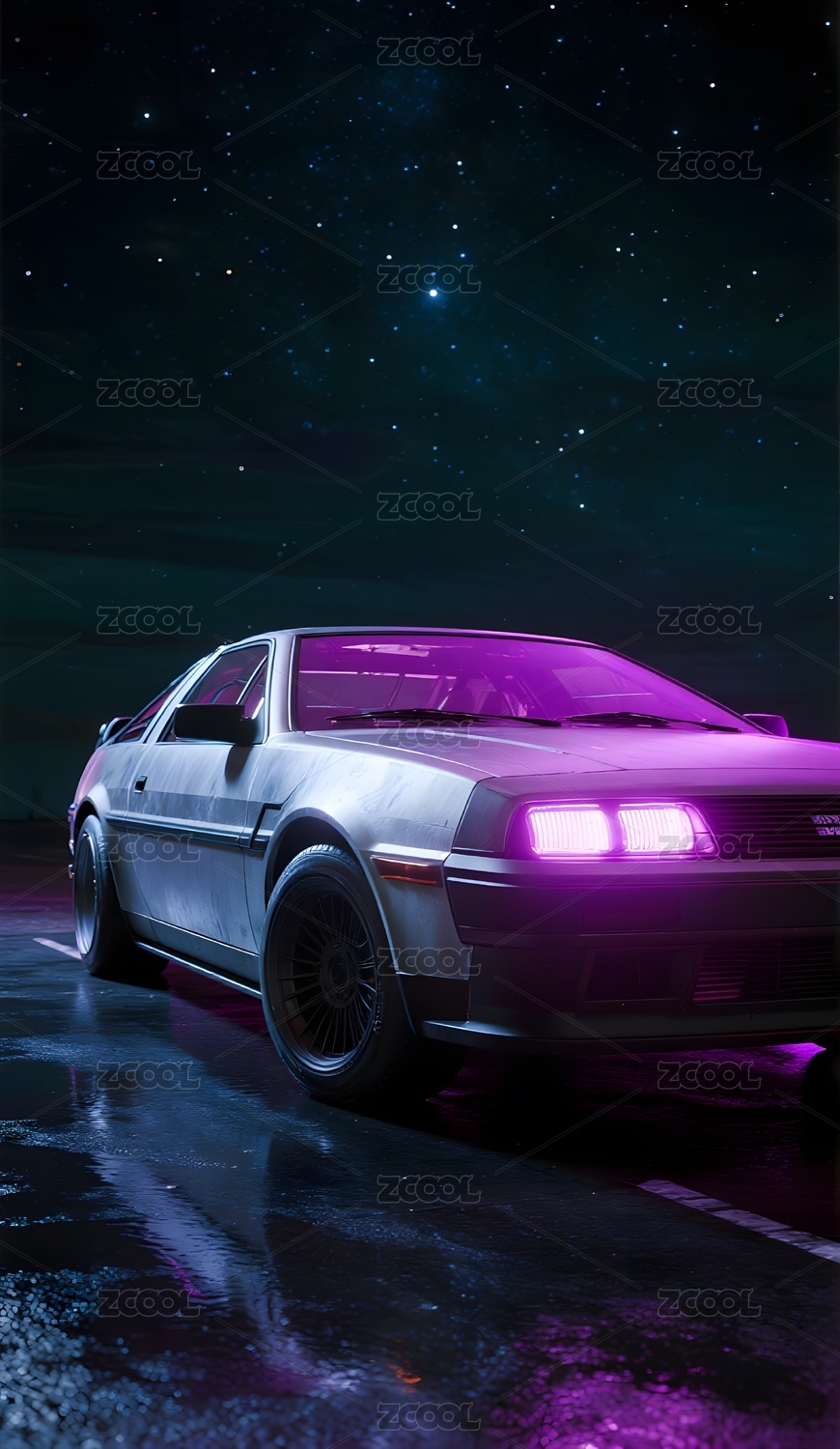 汽车复古蒸汽波霓虹灯抽象艺术风格怀旧插画