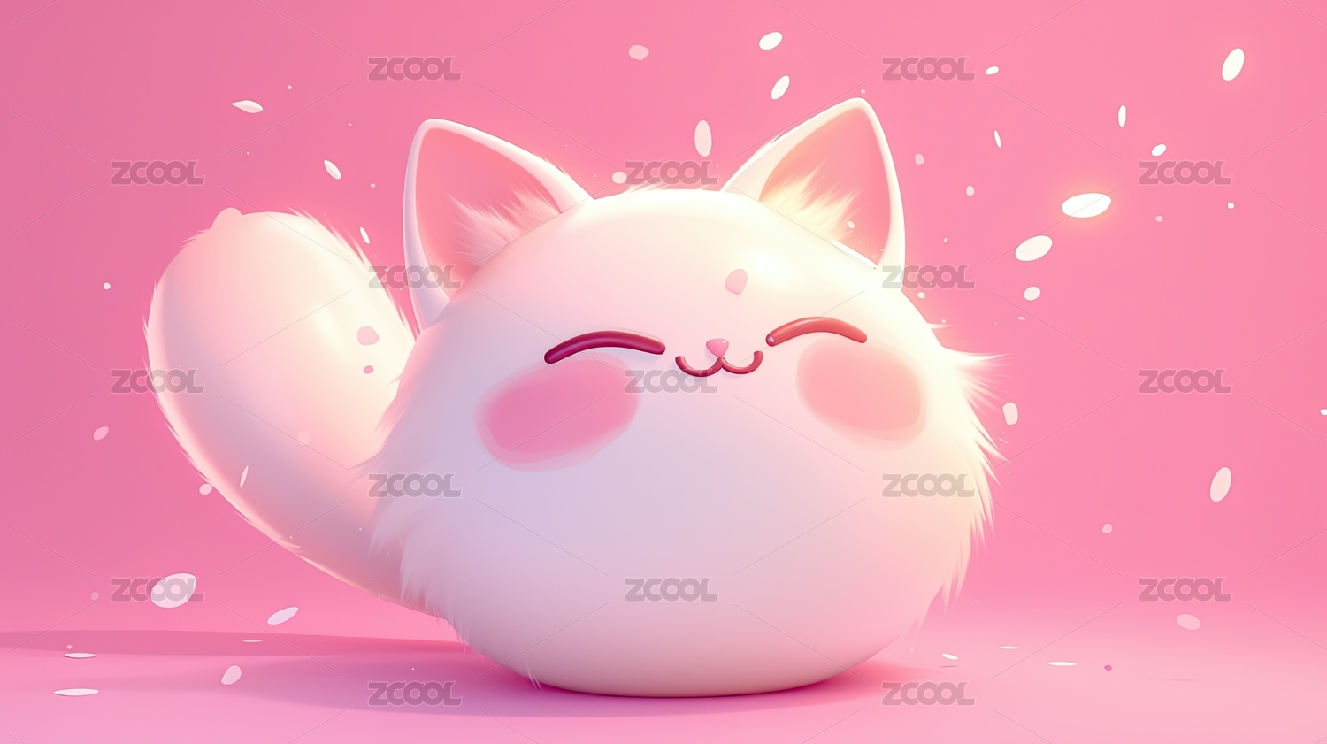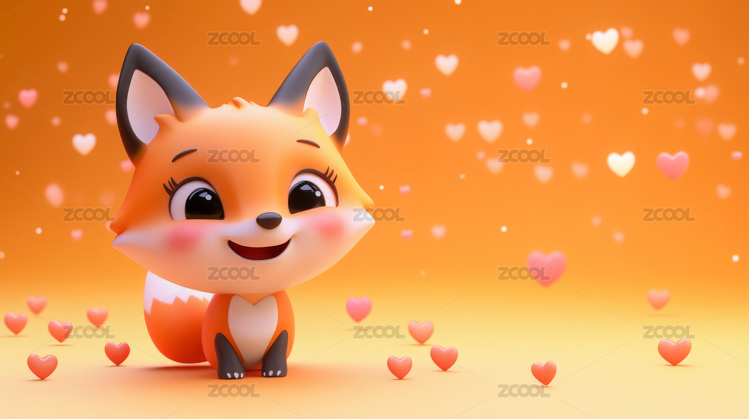 插画,三维立体,3D,可爱,动物,粉色,壁纸,萌宠,小狐狸,毛茸茸