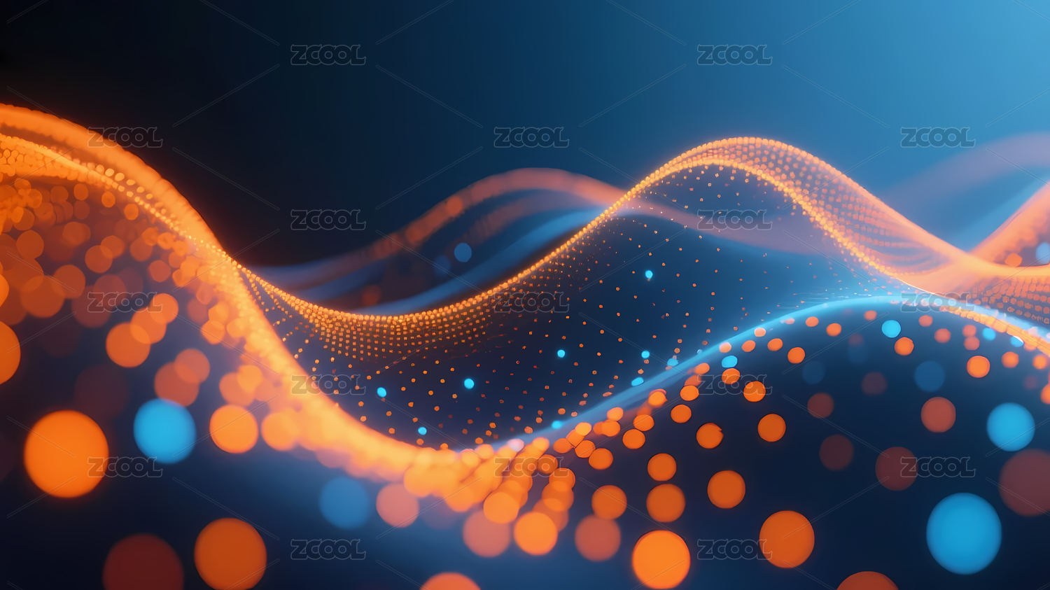 蓝色光点波浪线条