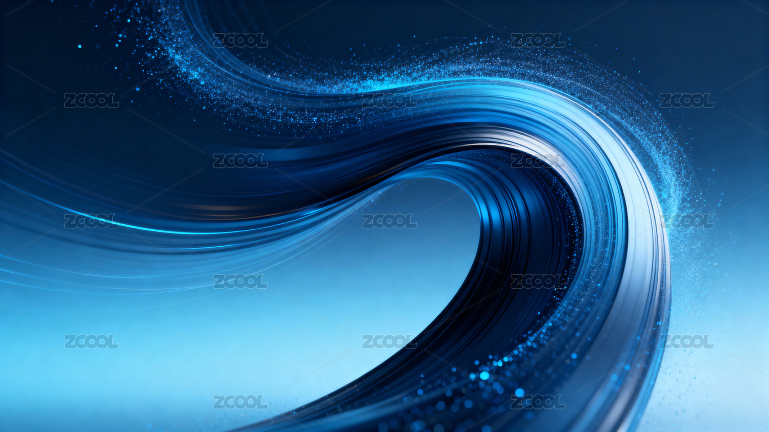 蓝色波浪光影抽象艺术图案