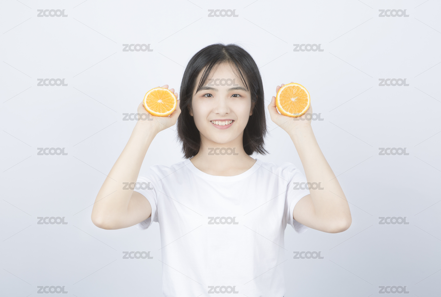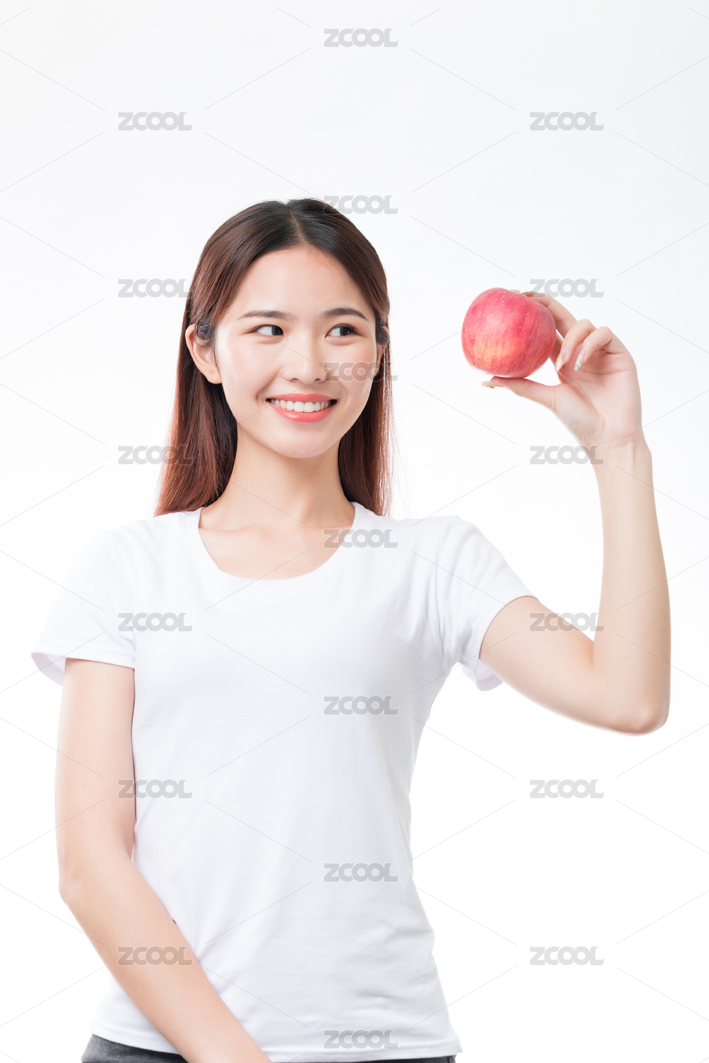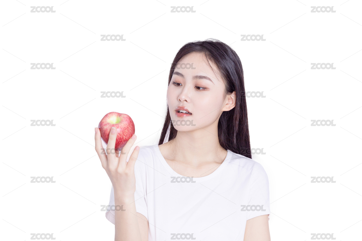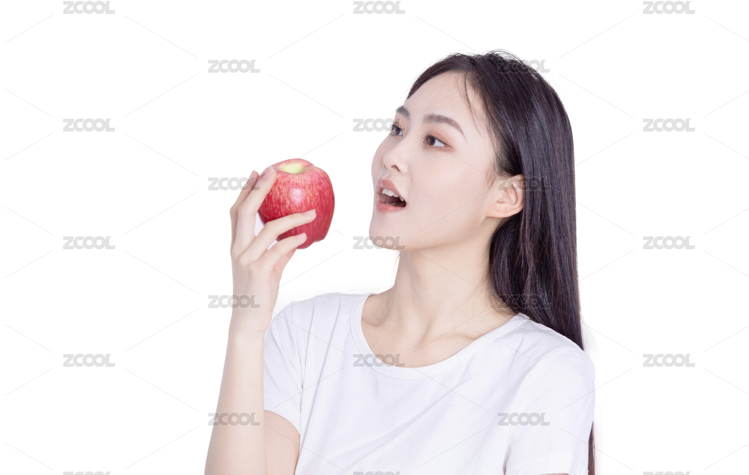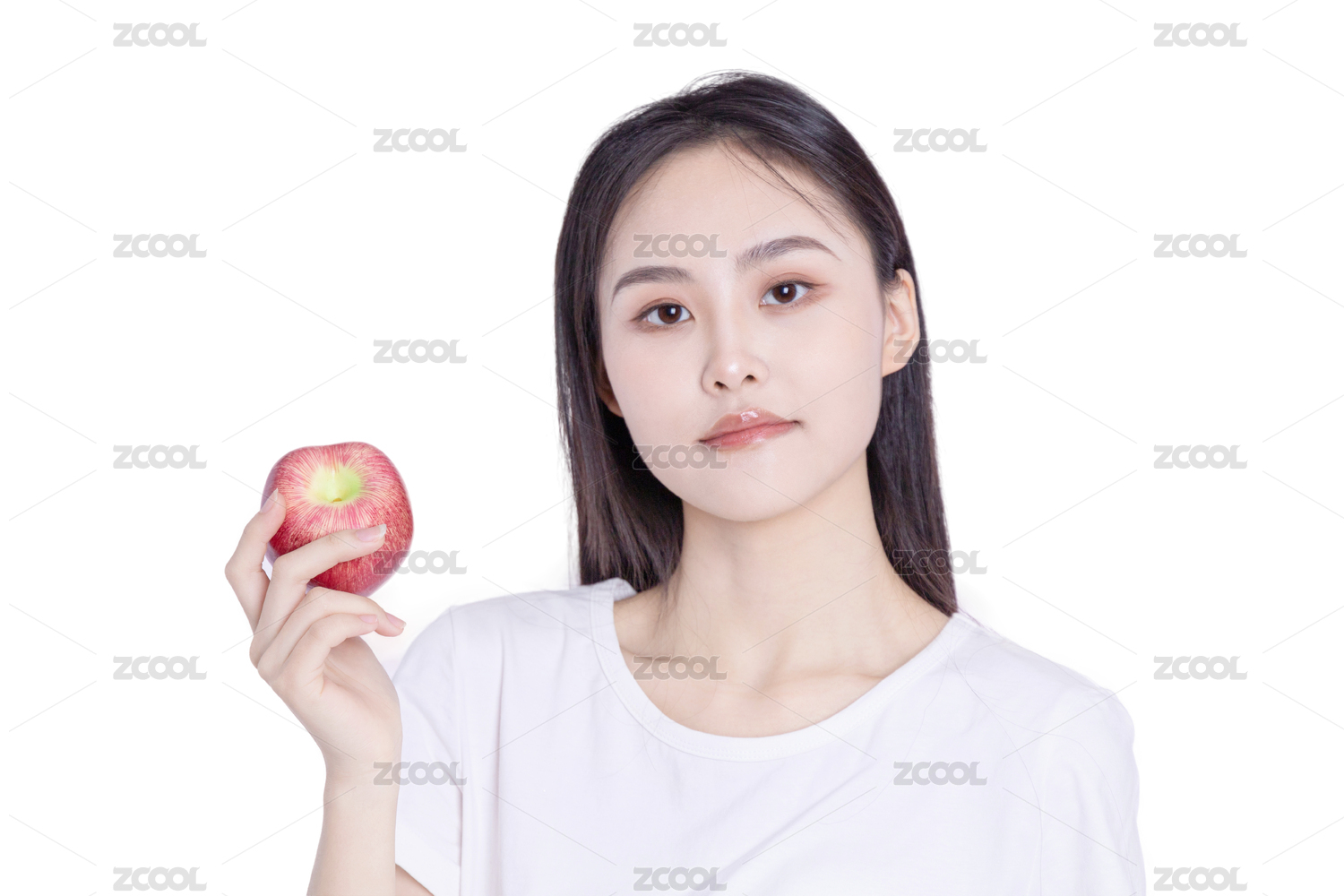 无背景,学生,苹果,微笑,女生,短发,白T恤,可爱,青春,俏皮