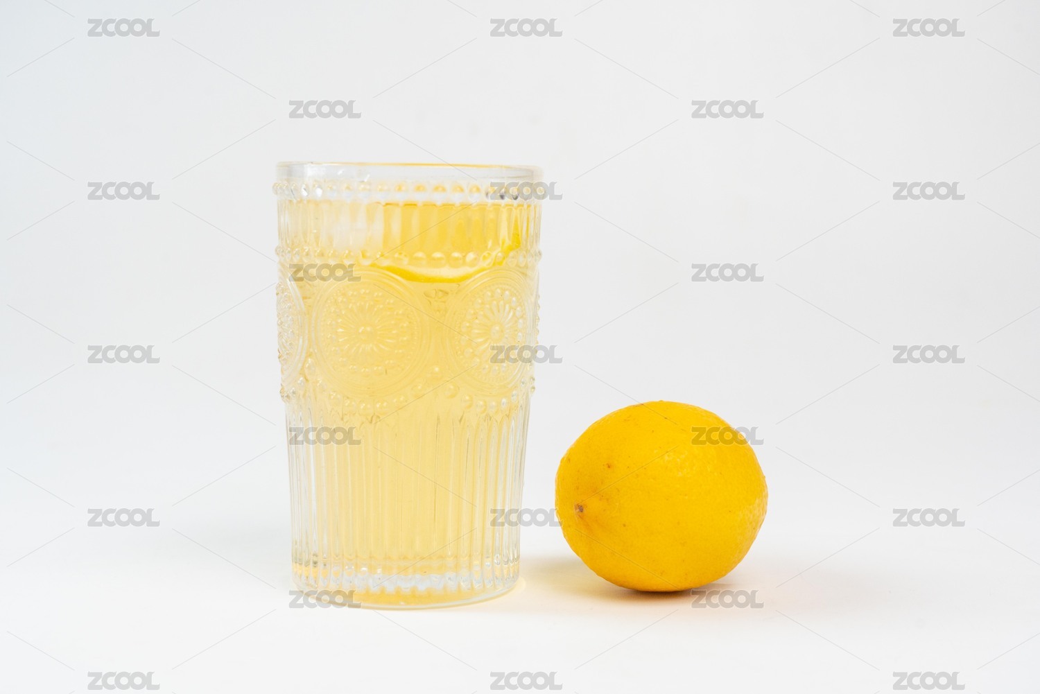 一只玻璃杯放着一片柠檬片