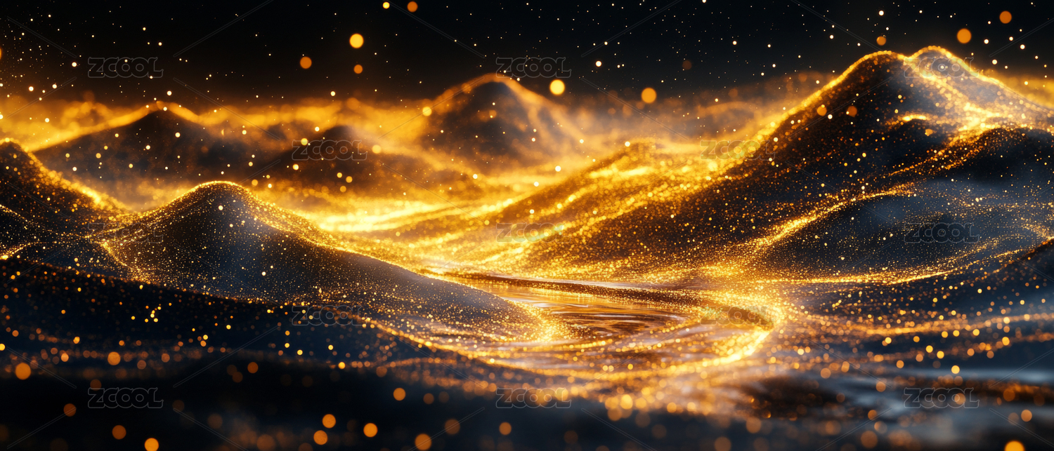 山峰,现代光效,多彩,黑色背景,3D,特写