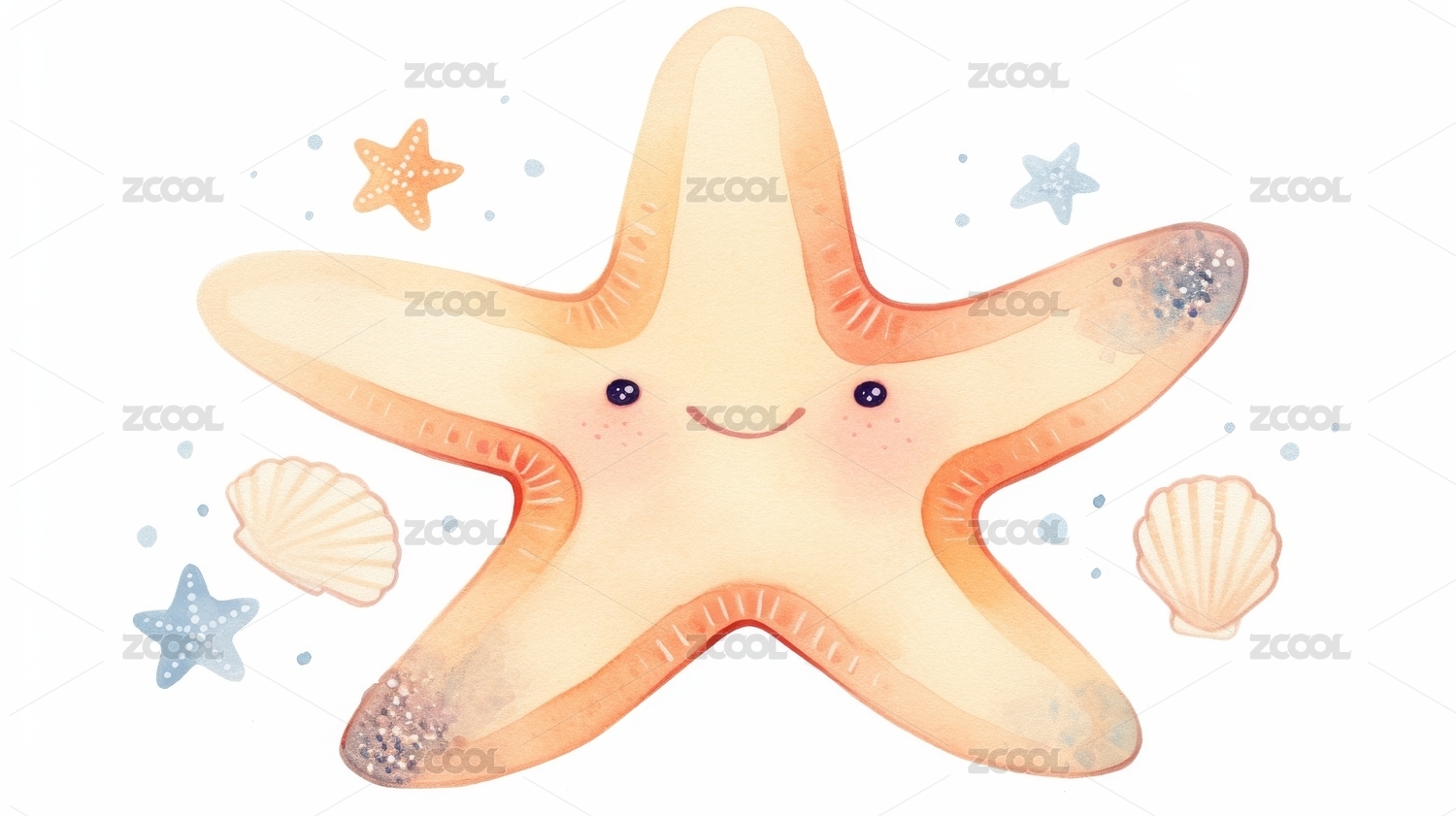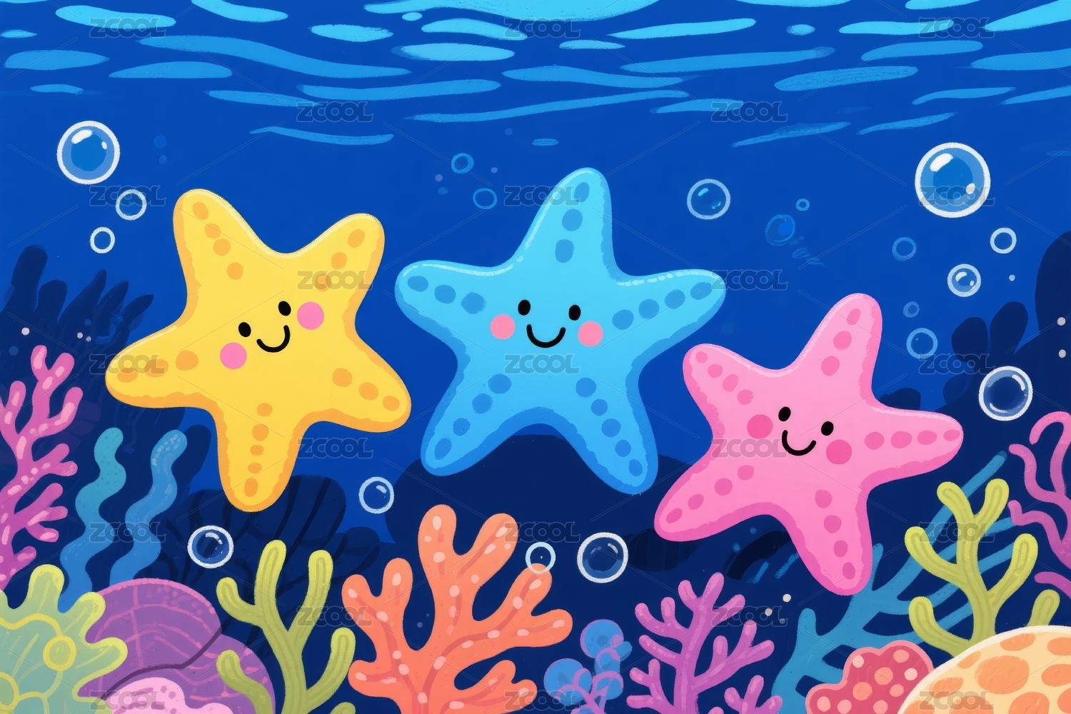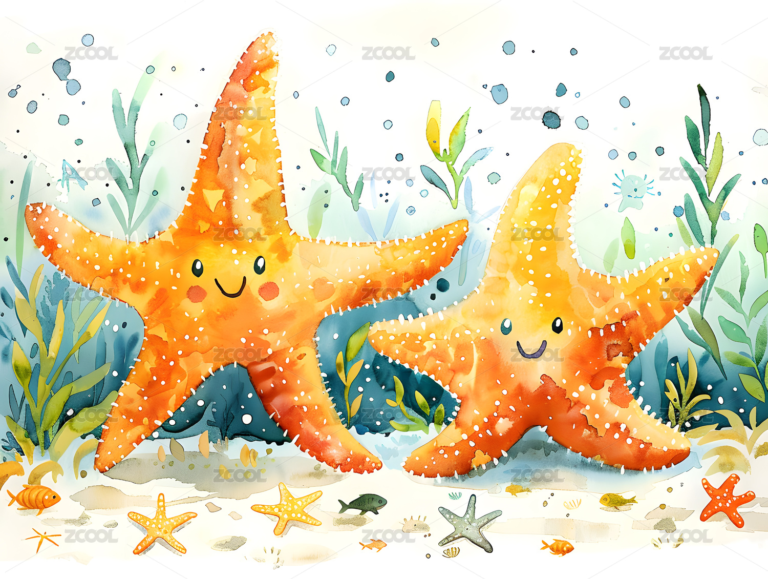 海星,插画,油画,特写,海底世界,海洋生物,水草,水彩