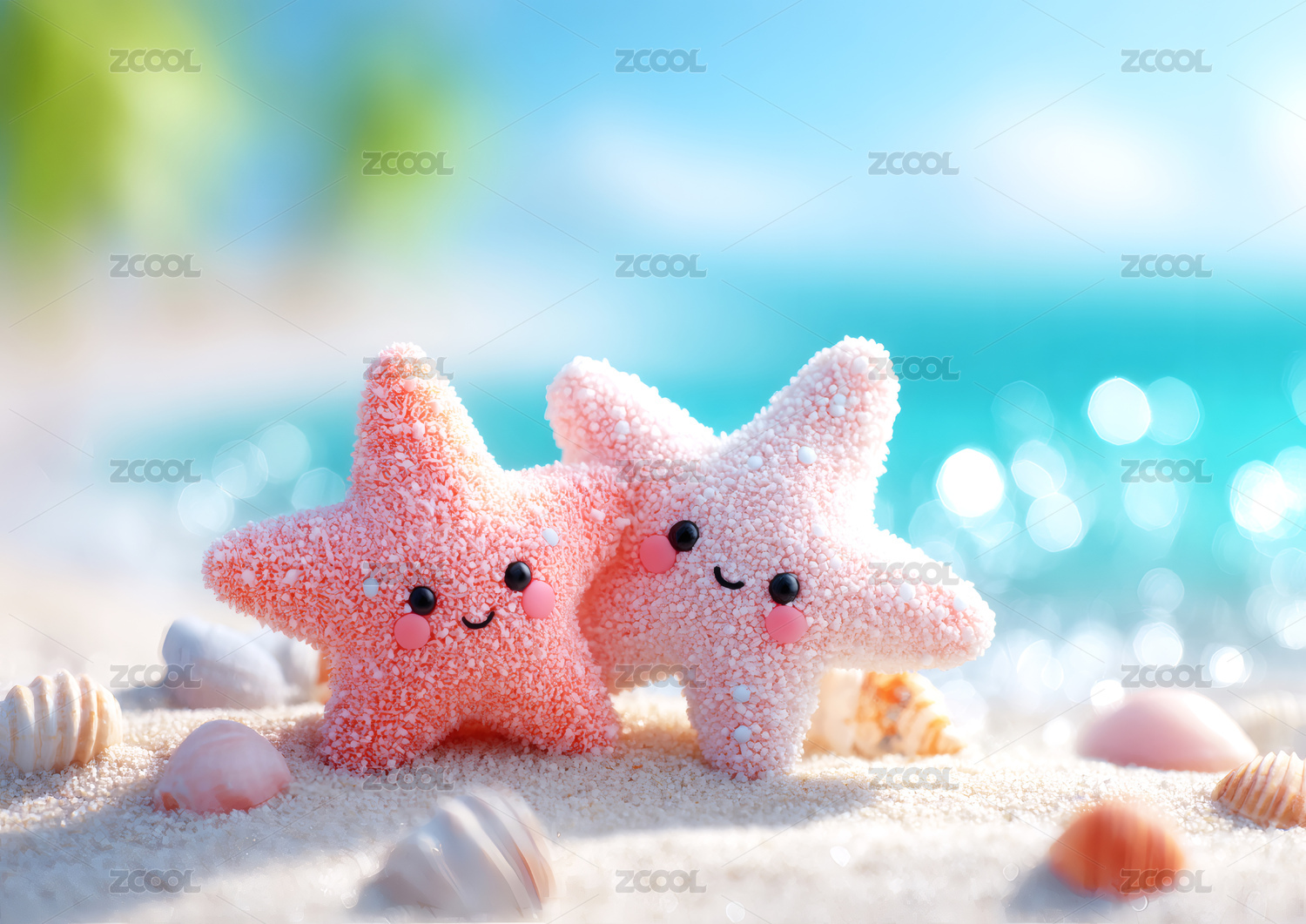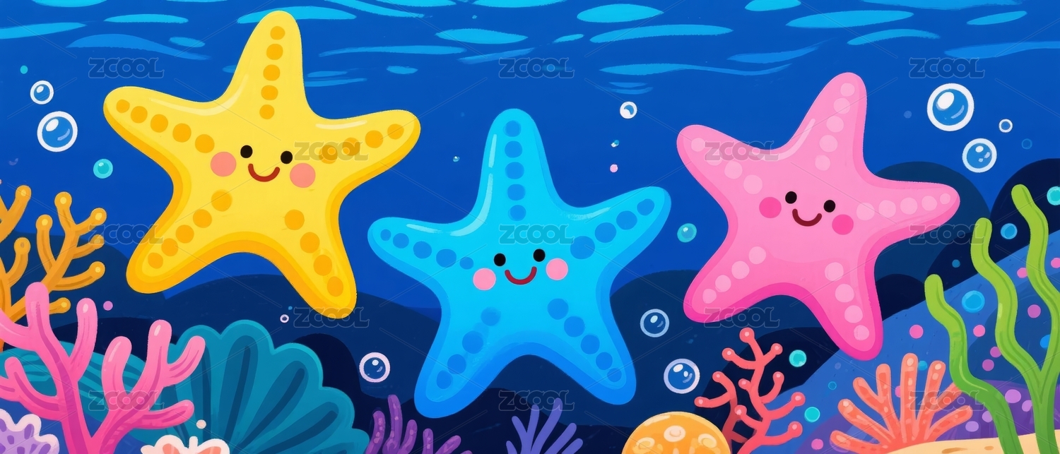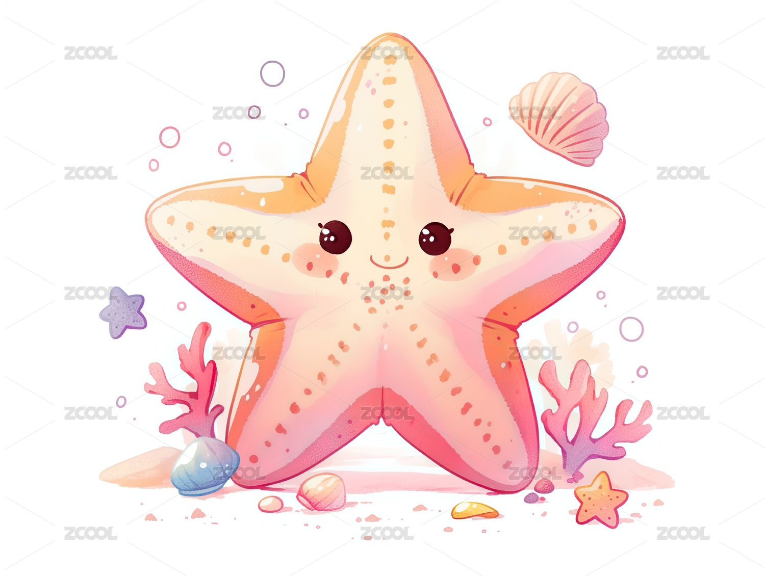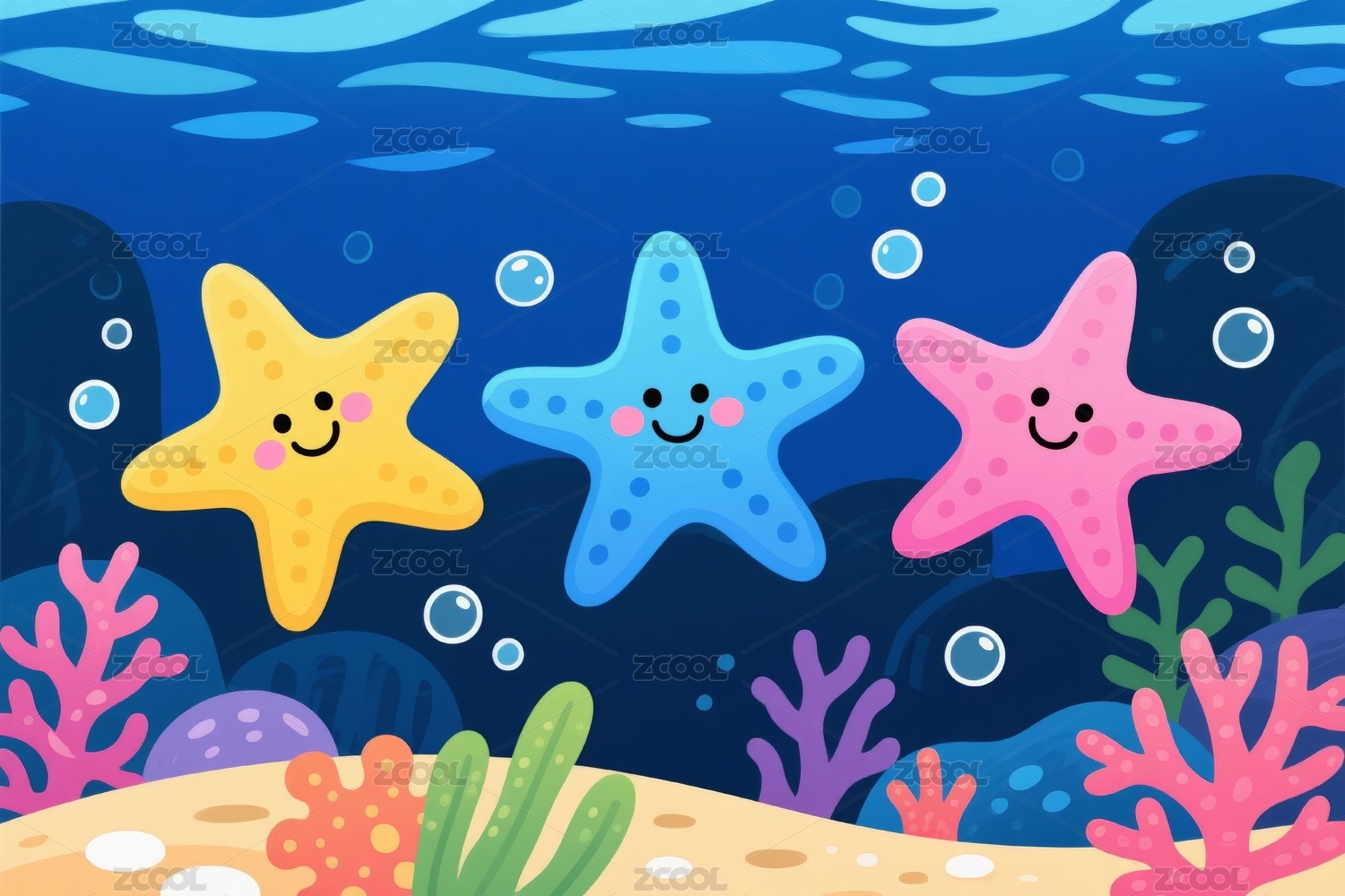 海星,插画,油画,特写,海底世界,海洋生物,水草,水彩
