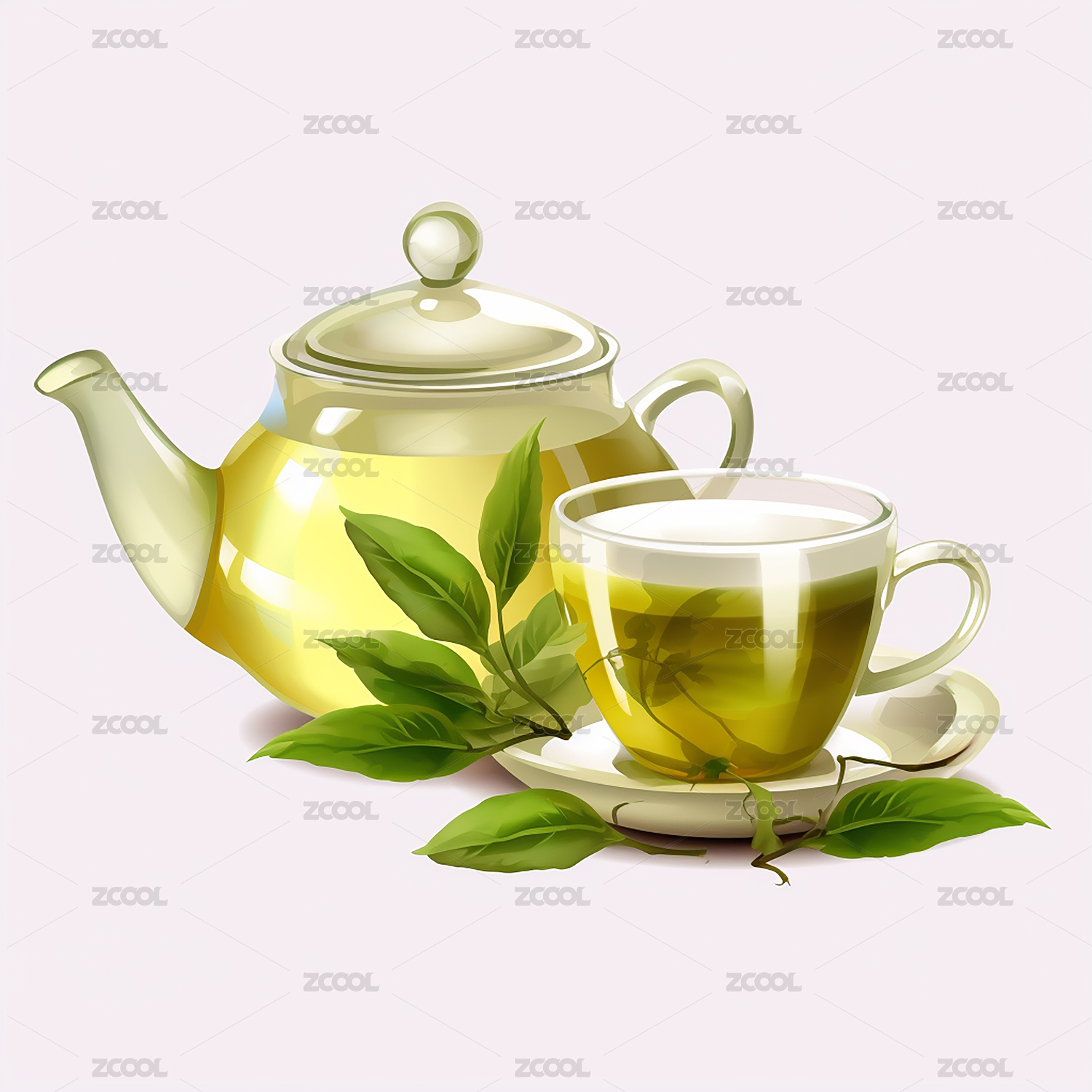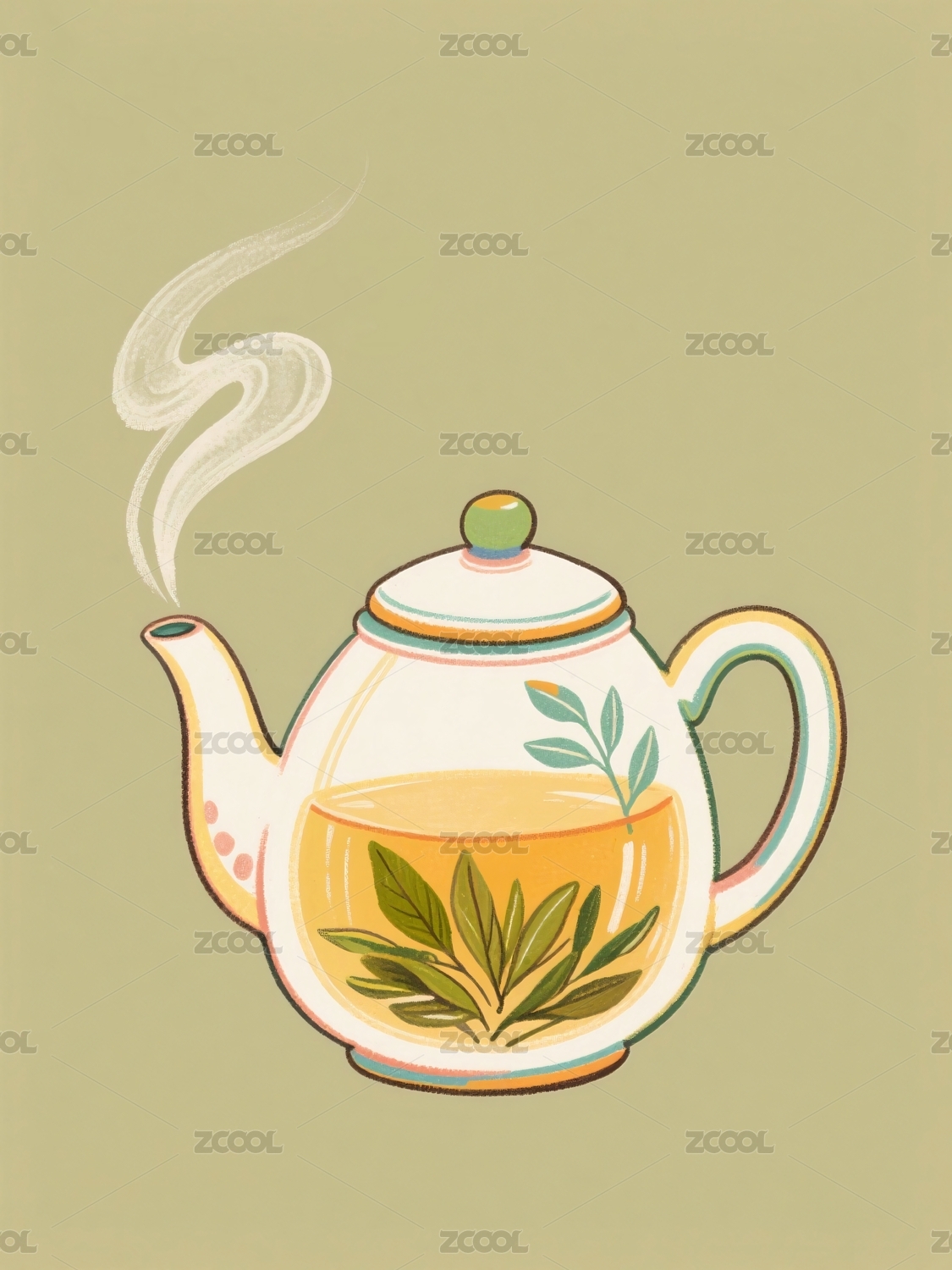 手绘,卡通,茶壶,插画,茶叶,茶文化,绿化,饮品,容器
