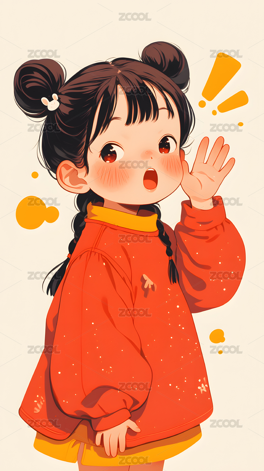 手绘,卡通,可爱,唐装,女孩,插画,漂亮,汉服,亚洲服饰,红衣裳