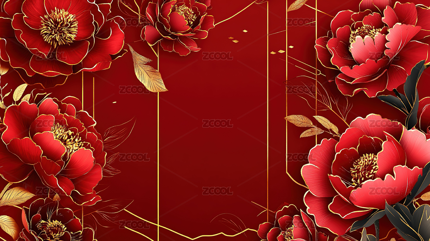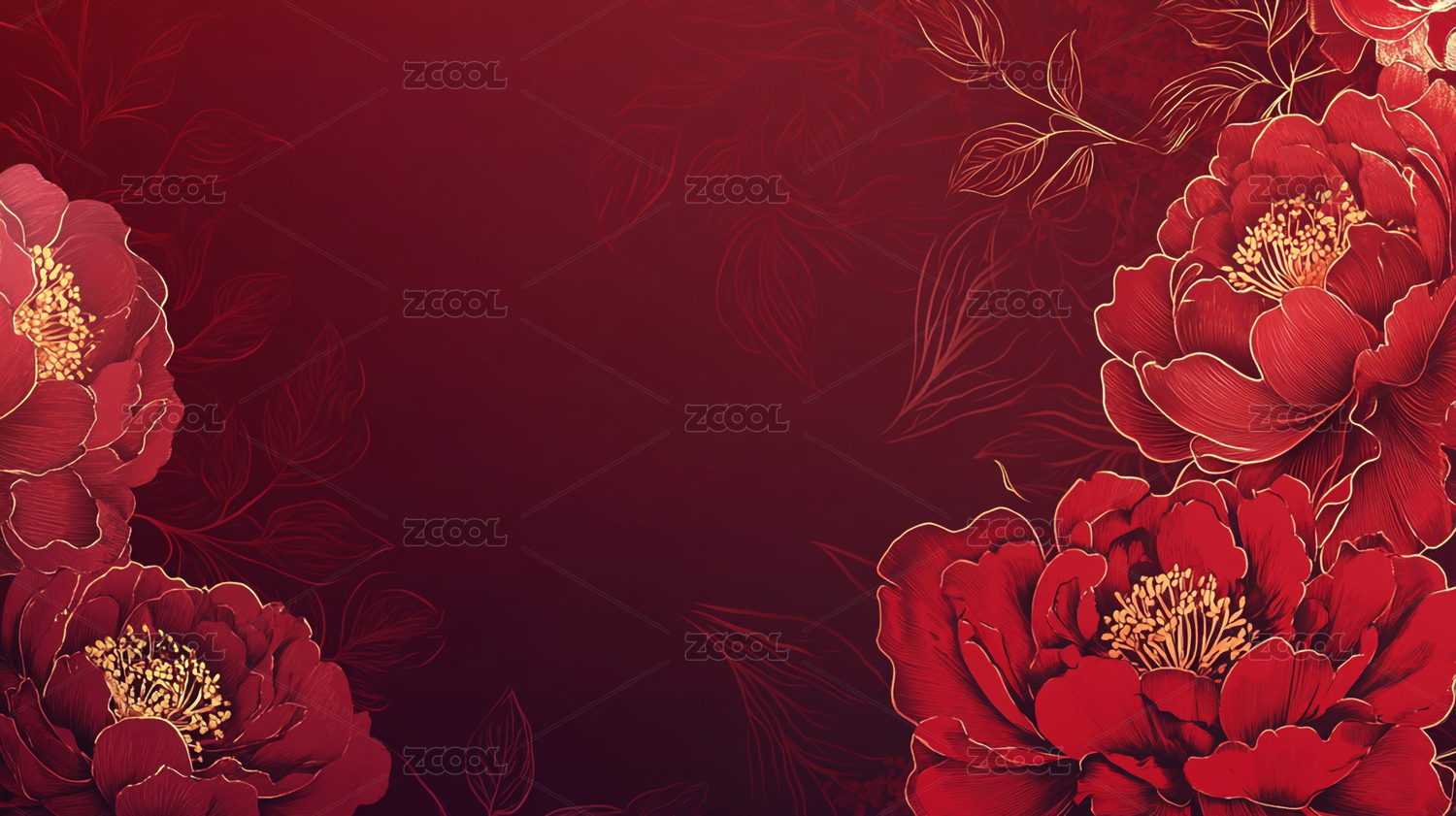 红色中国风牡丹背景