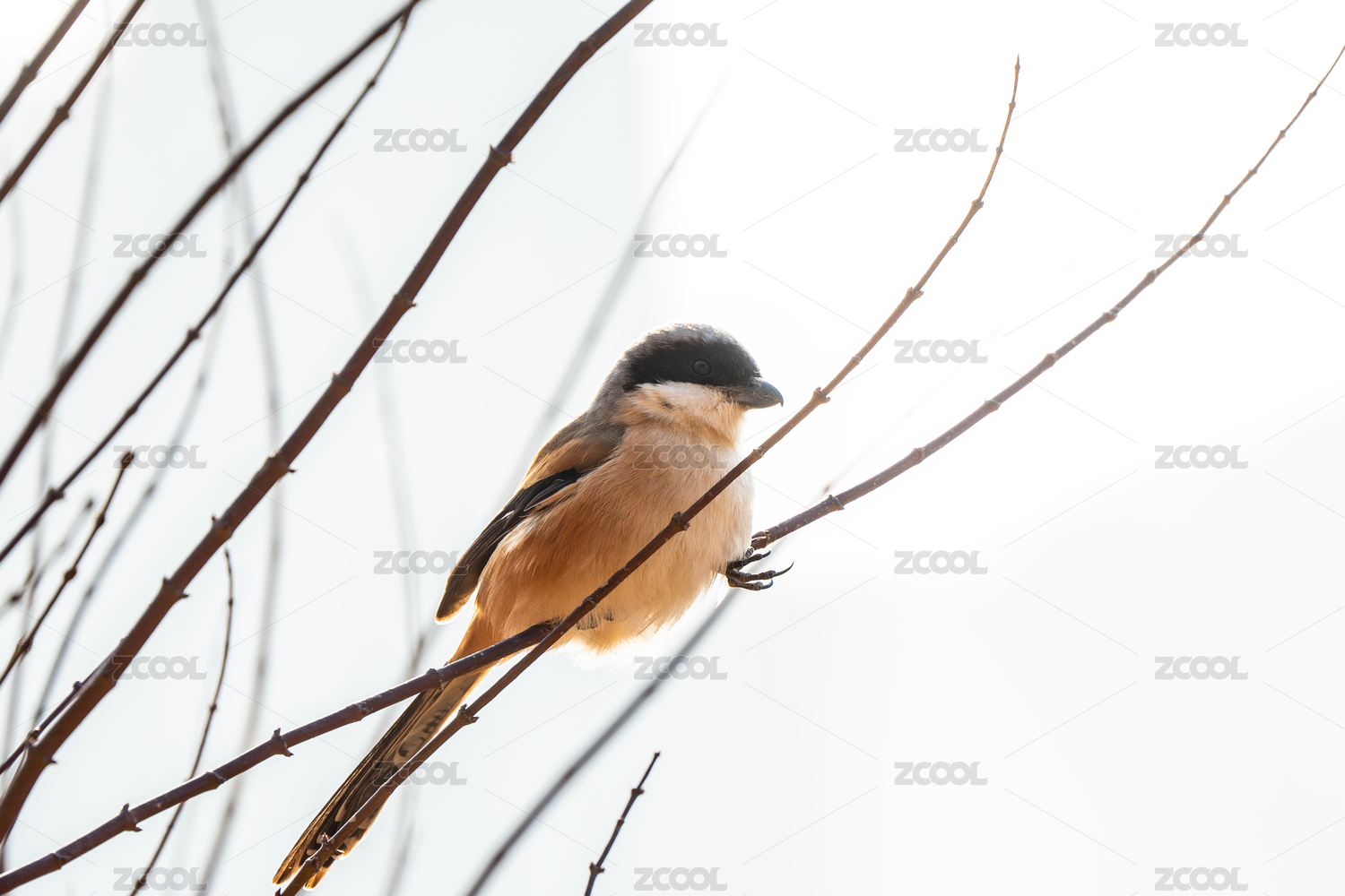 独自在林子里活动及觅食的红头长尾山雀鸟