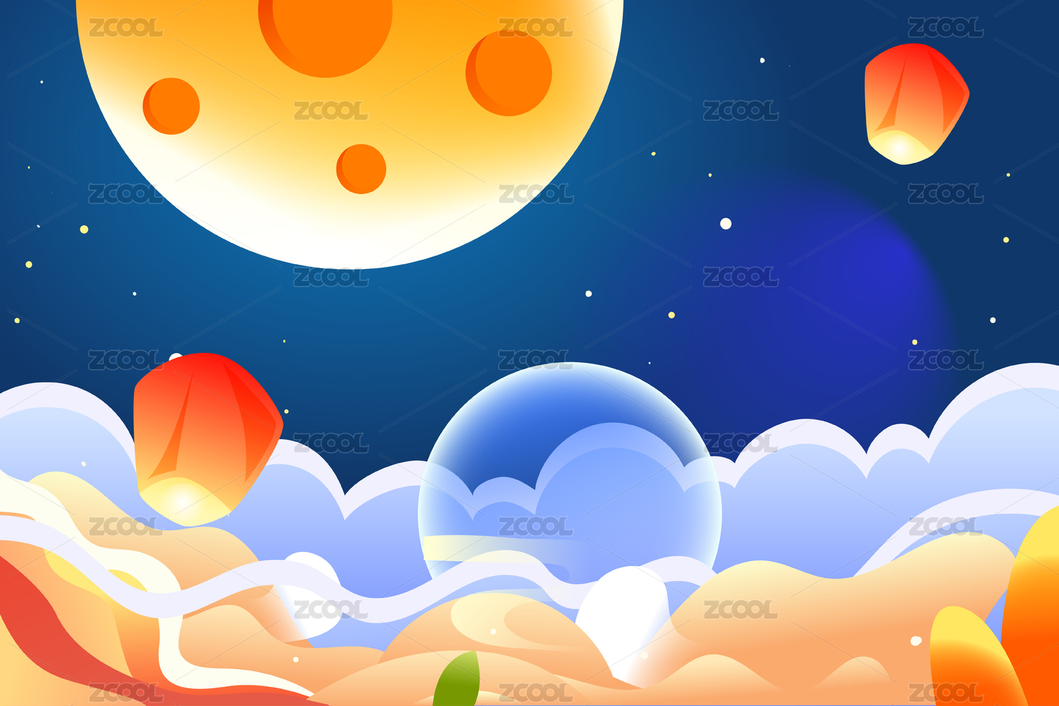中秋节放孔明灯矢量插画