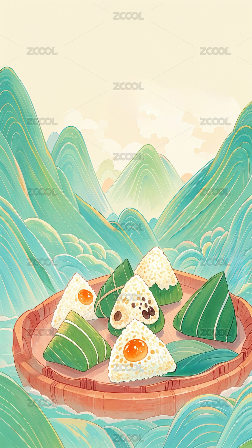 中国风,国潮,端午节,节日,插画,祥云,竹叶,传统节日,节气,粽子