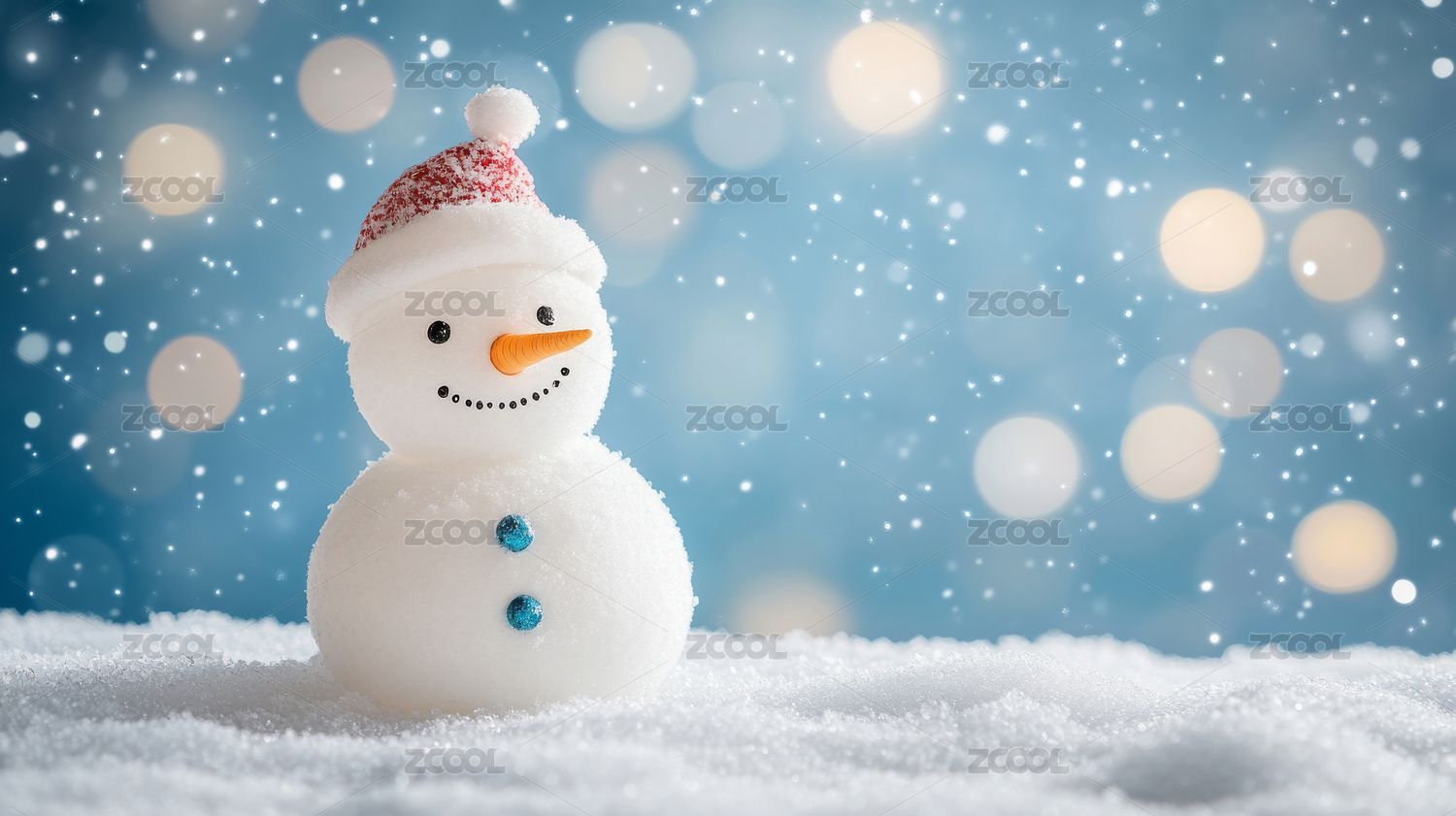 雪地里的小雪人戴着红帽子