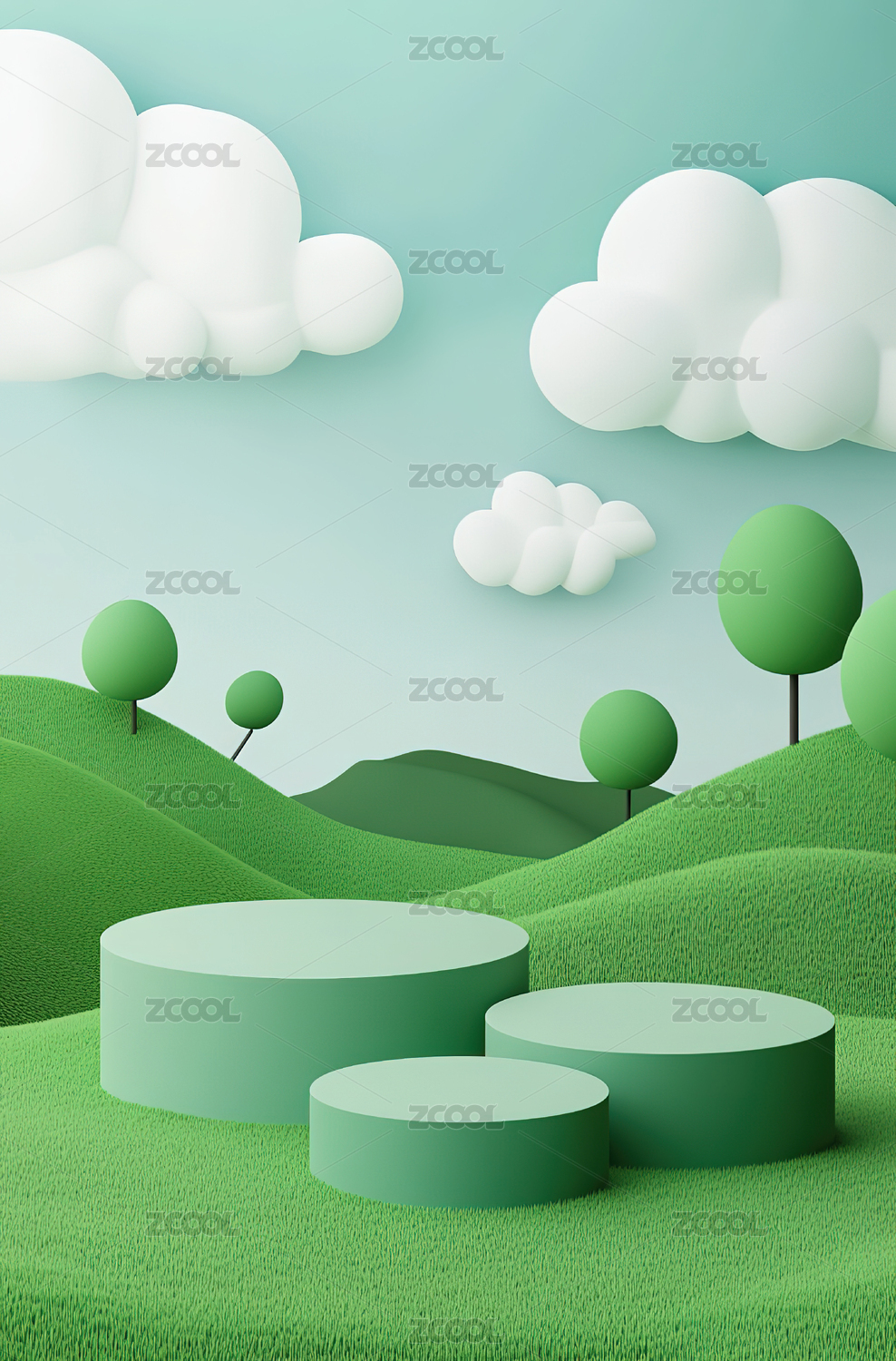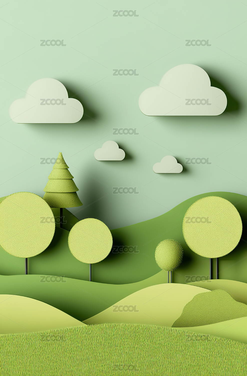 绿色羊毛毡毛绒毛线田野3D卡通立体插画
