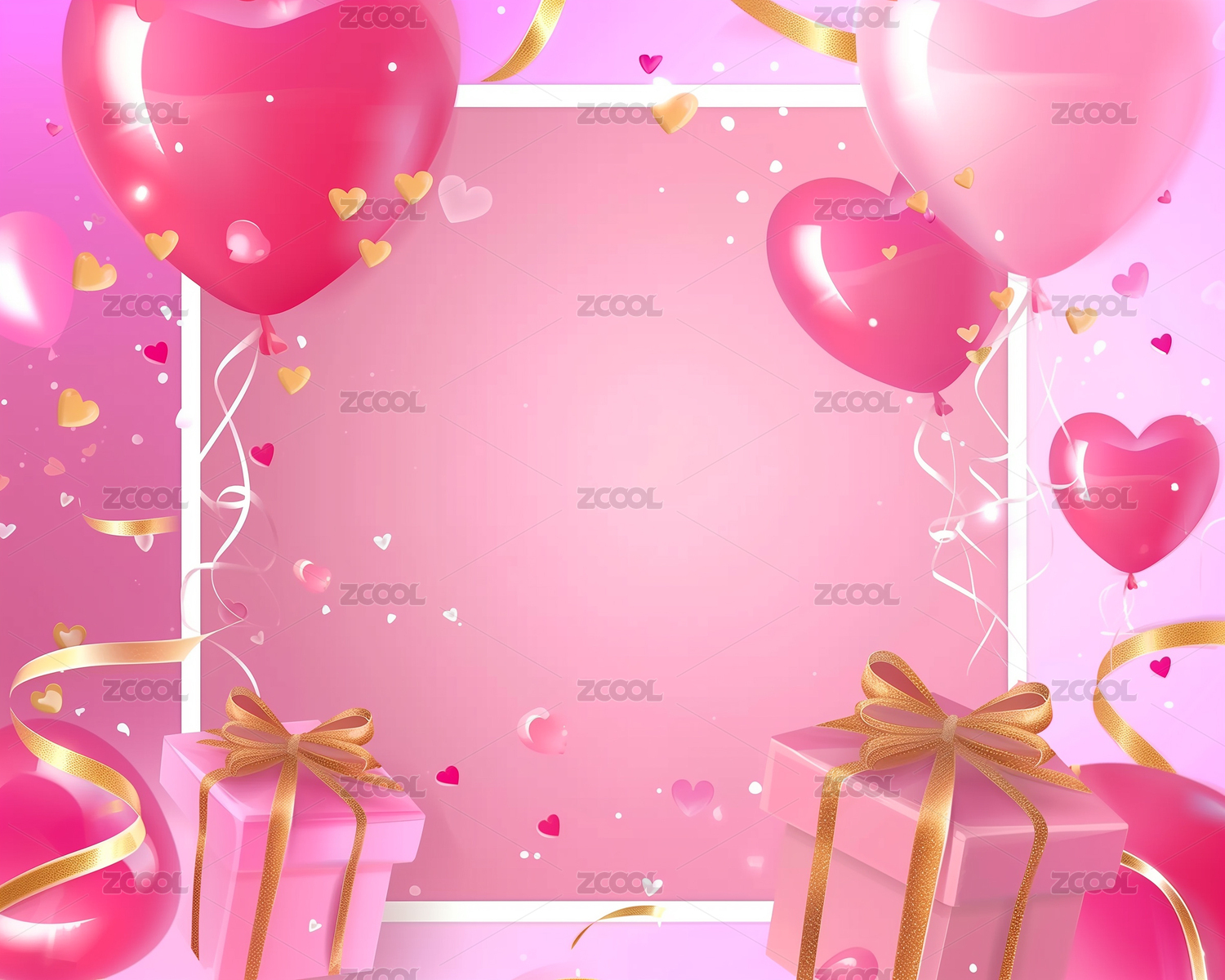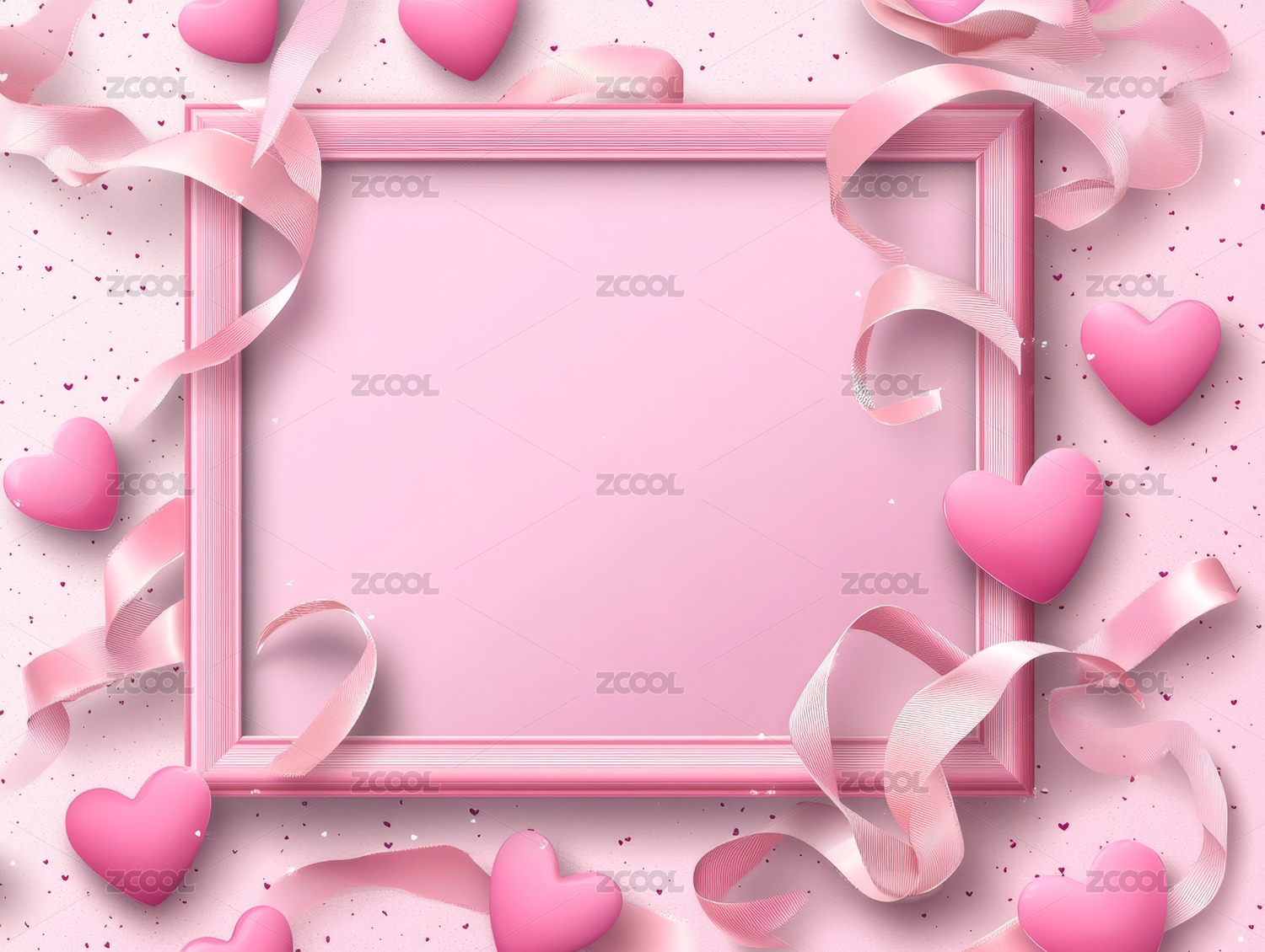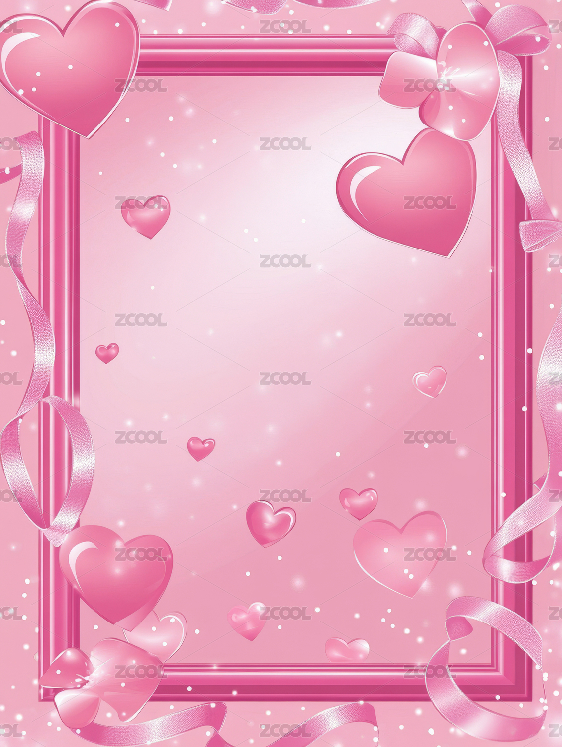 粉色,相框,海报,情人节,浪漫,爱,明亮,发光,插画,概念