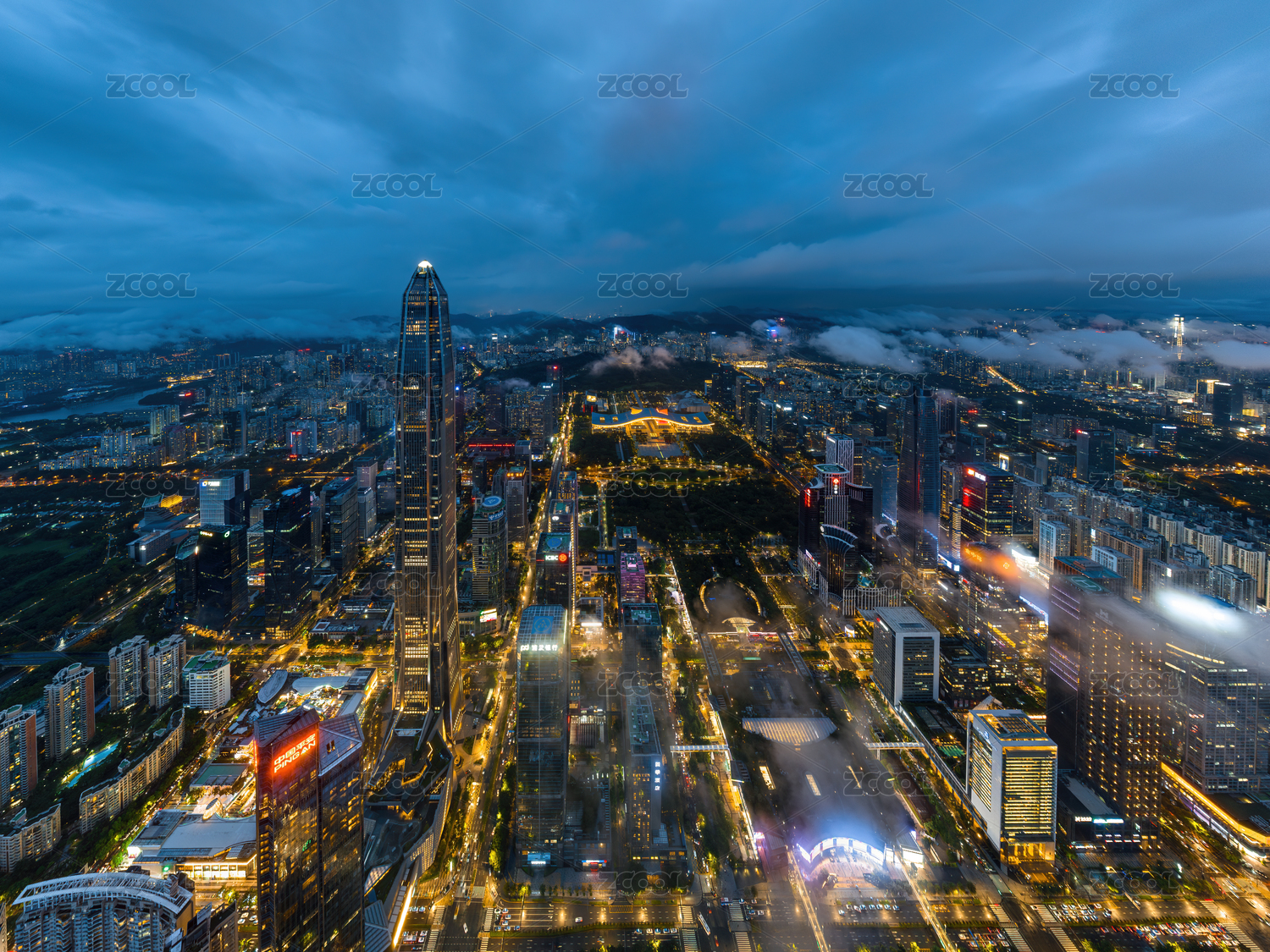 深圳,福田,CBD,平安大厦,晴天,航拍,大湾区,城市,灯光,夜景