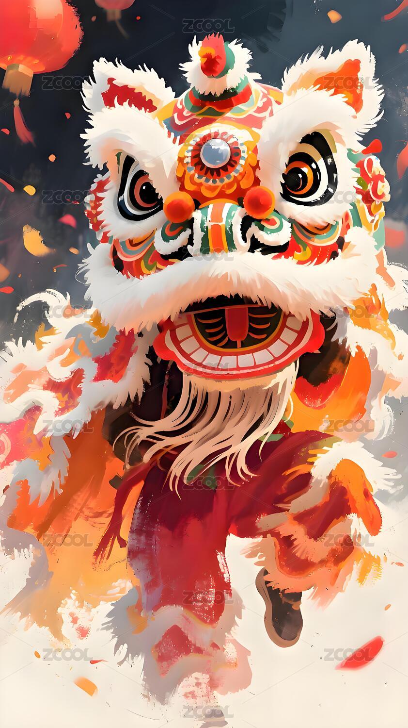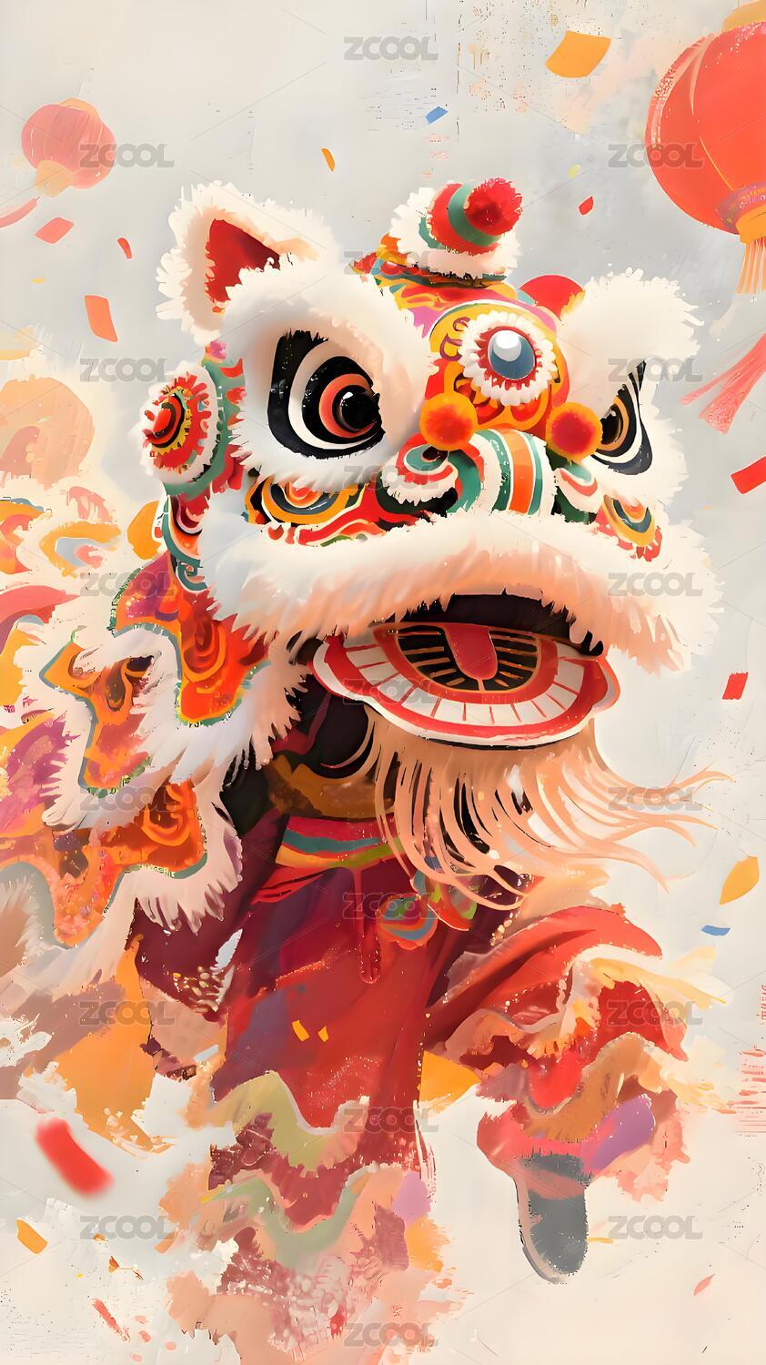 春贴春节舞狮节日贺图插画