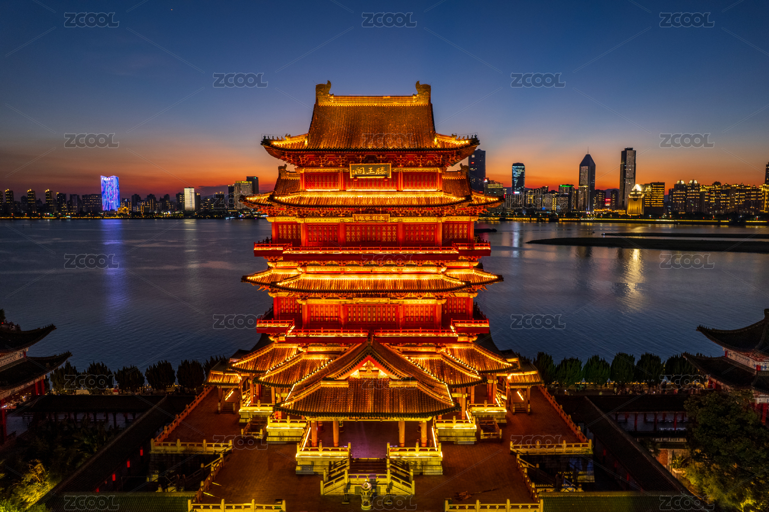 江西,南昌,滕王阁,双子塔,日落,高空,航拍,赣江,蓝调,城市