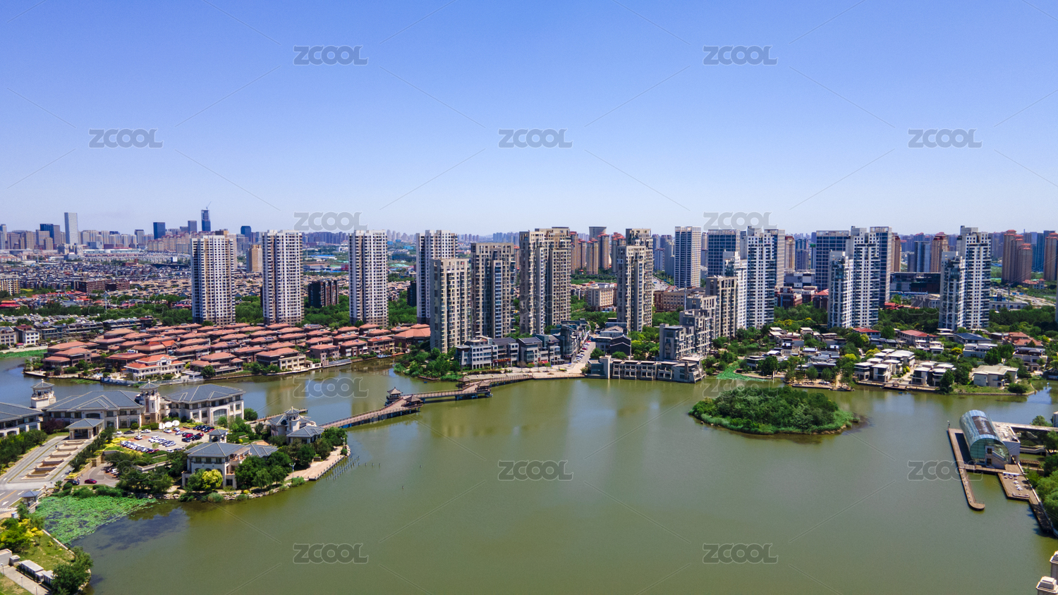 晴朗天空下航拍中国安徽省蚌埠市城市建筑风光