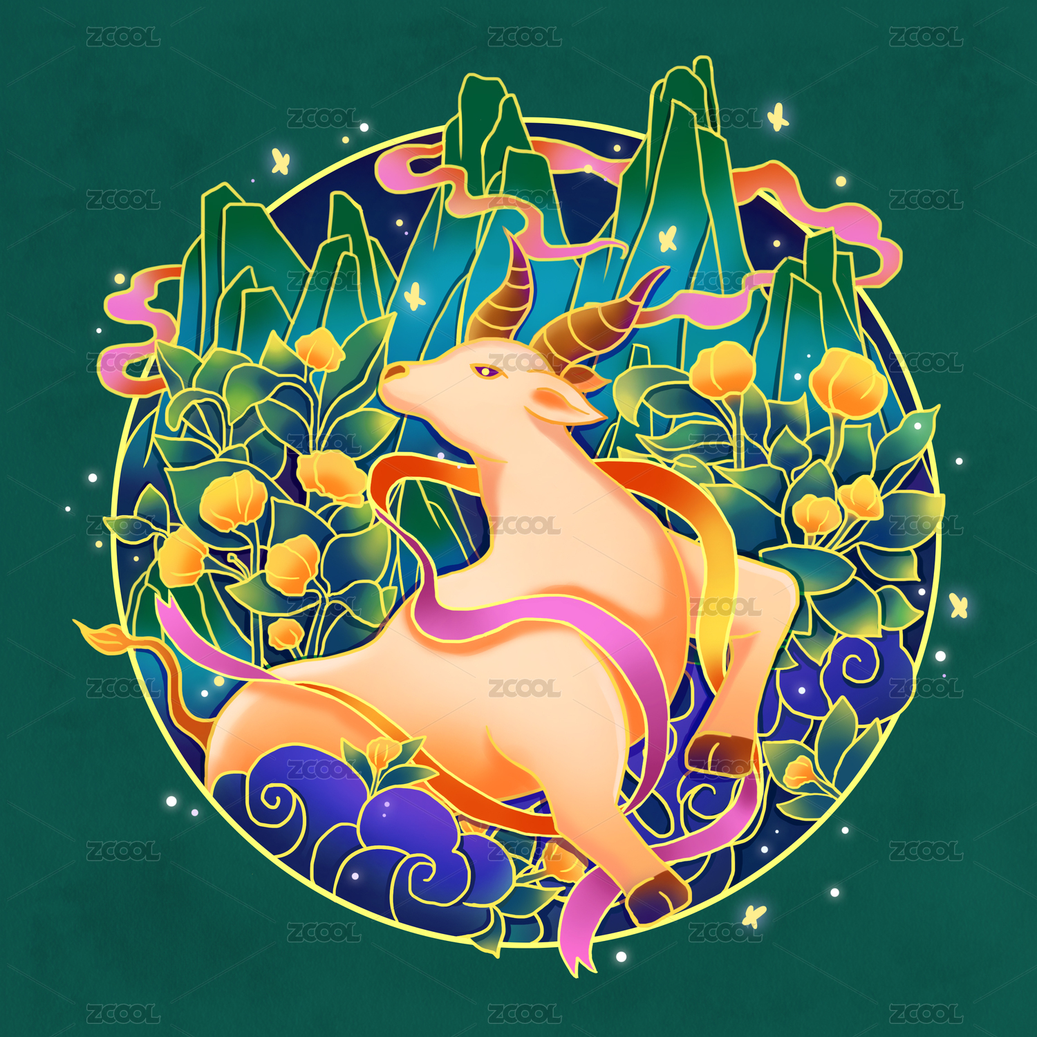 HEYYTGF2020,牛,牛年,牛转新机,万物更新,国潮,敦煌,十二生肖,中国风,丑牛