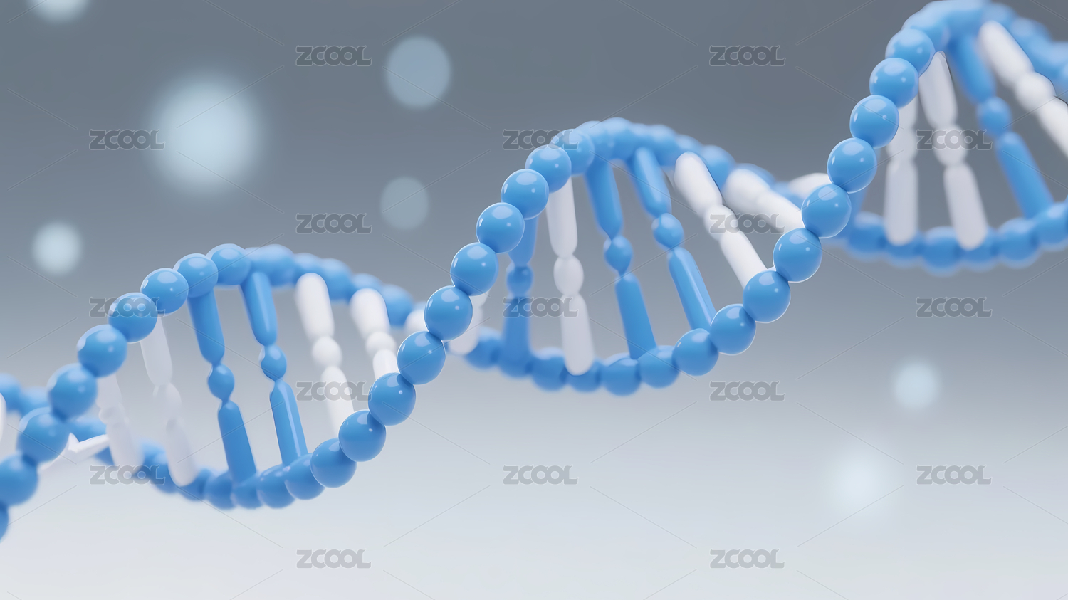 蓝色调的DNA 染色体螺旋结构3D渲染