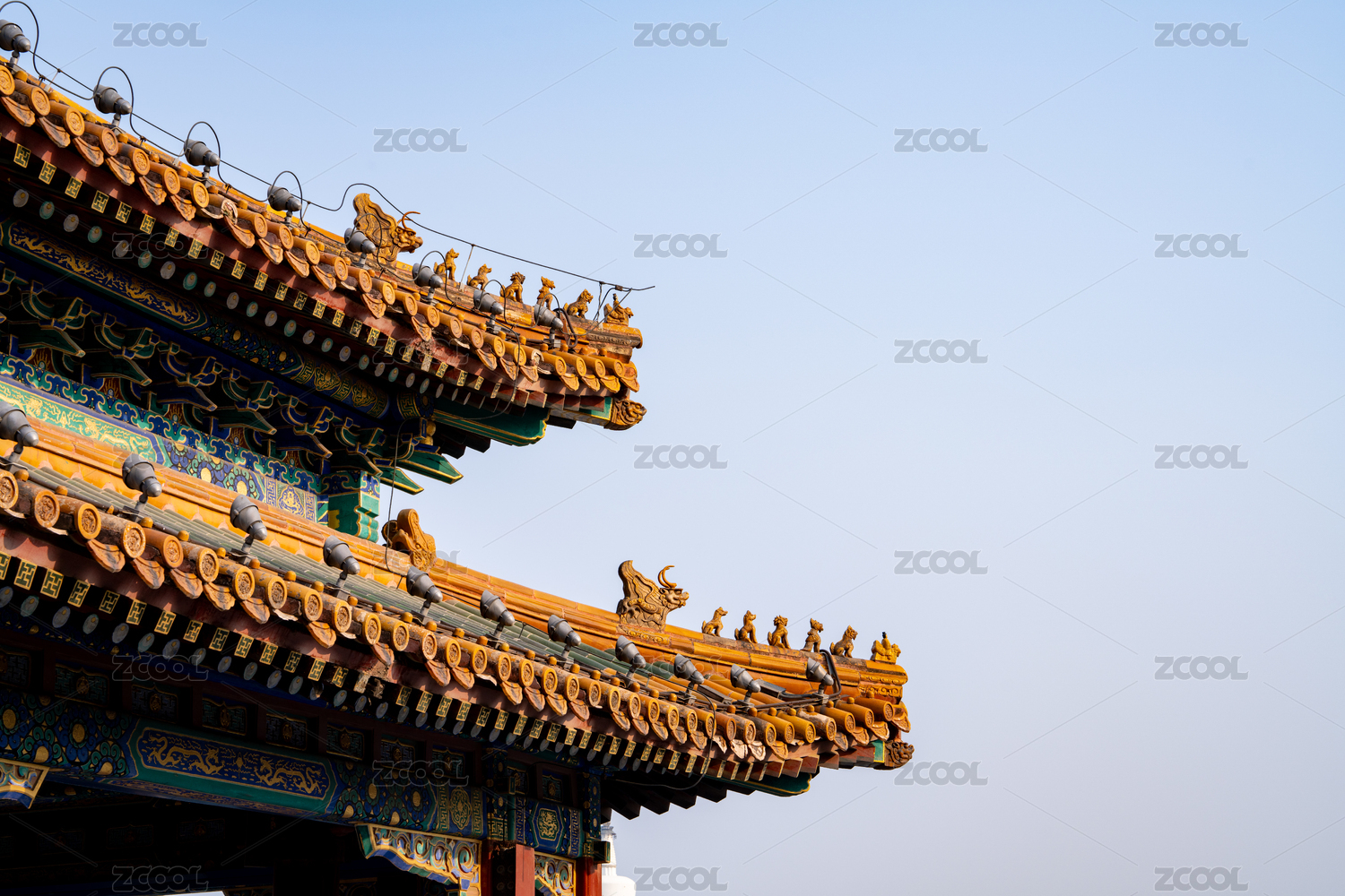 中国北京故宫东方古代建筑屋檐上的脊兽