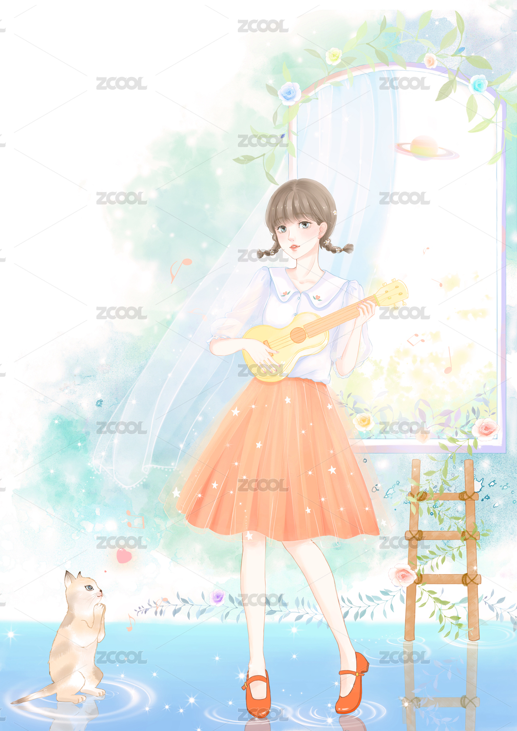 弹着尤克里里的可爱少女