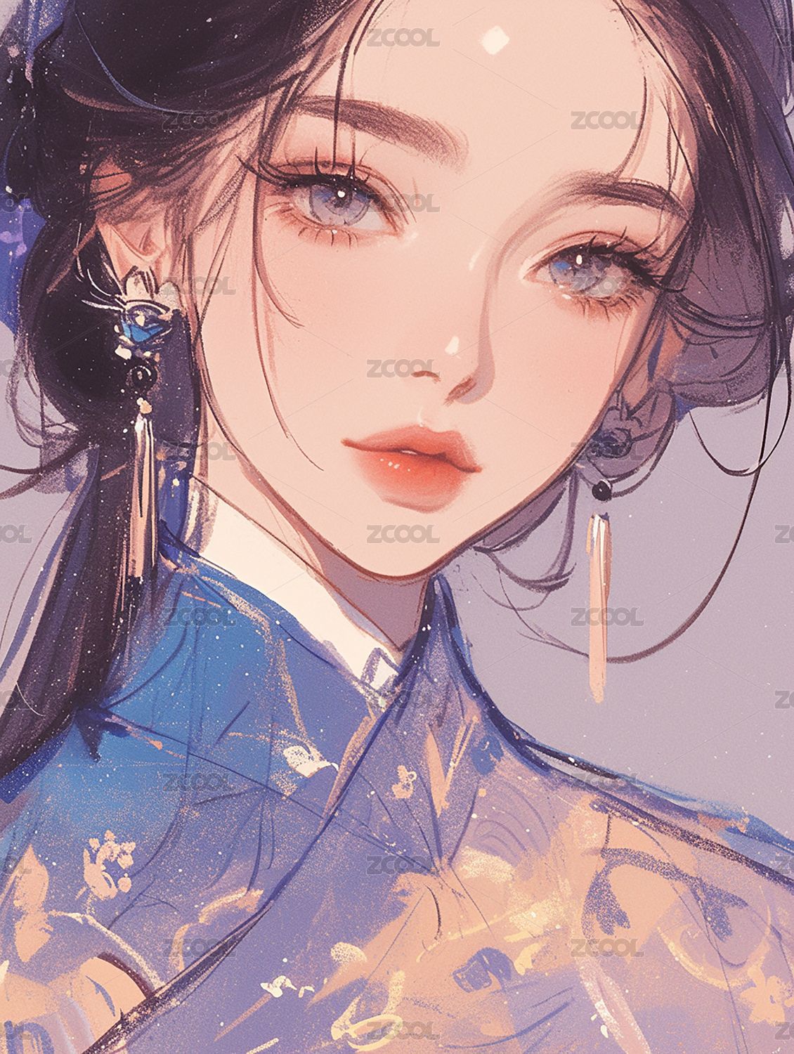 手绘卡通古风身穿传统服饰汉服漂亮女孩插画