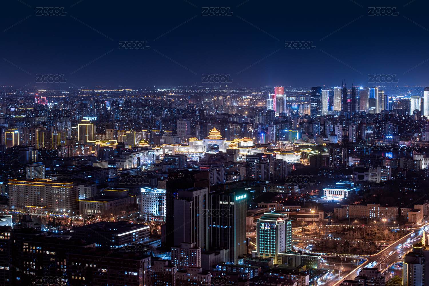 中国山西省太原市城市建筑夜景,高空俯瞰