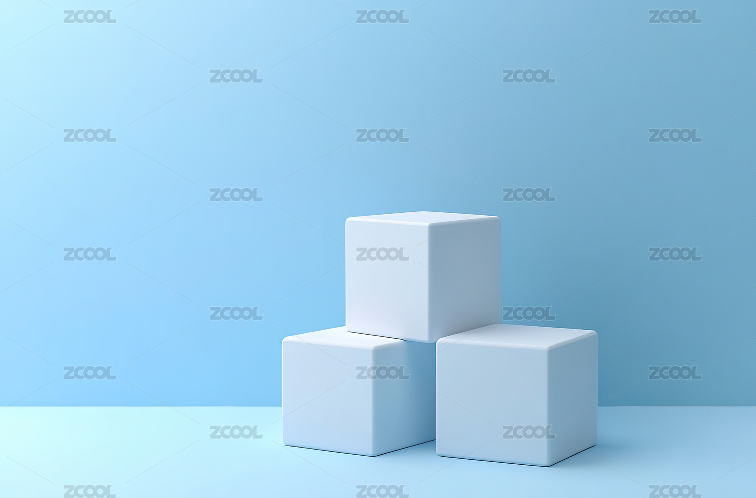 白色立方体在蓝色淡彩背景上。
