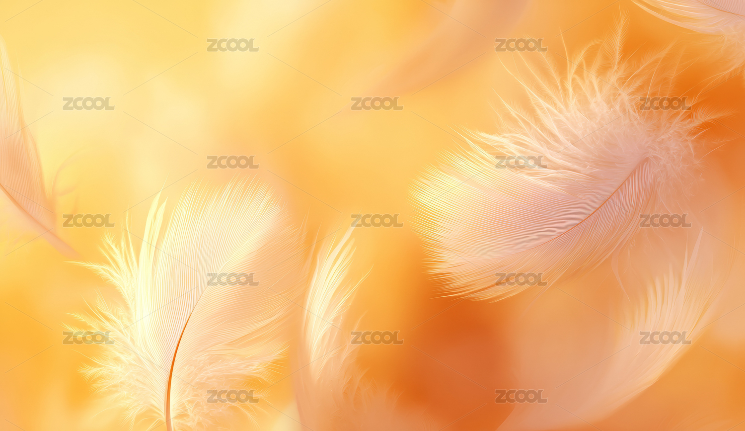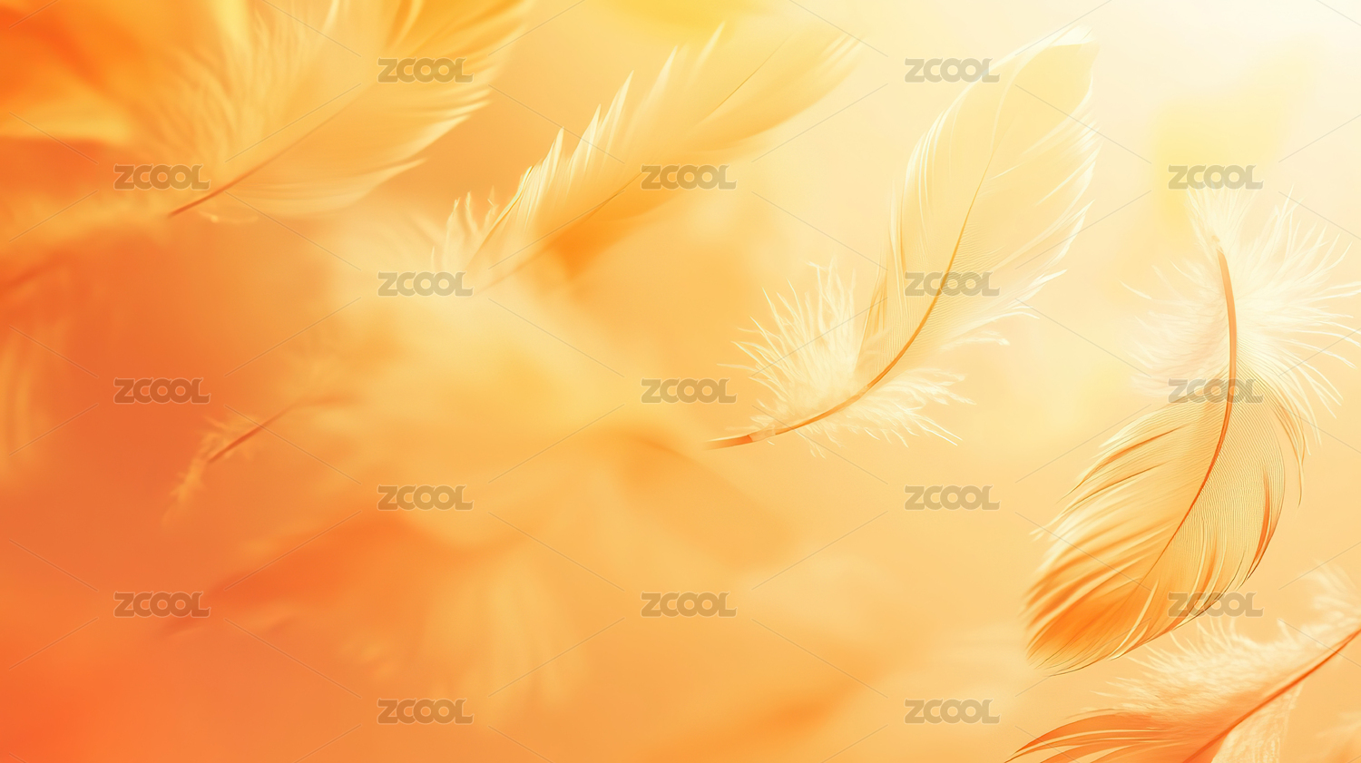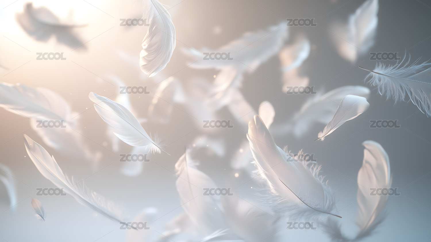 柔软羽毛漂浮在金色空气中