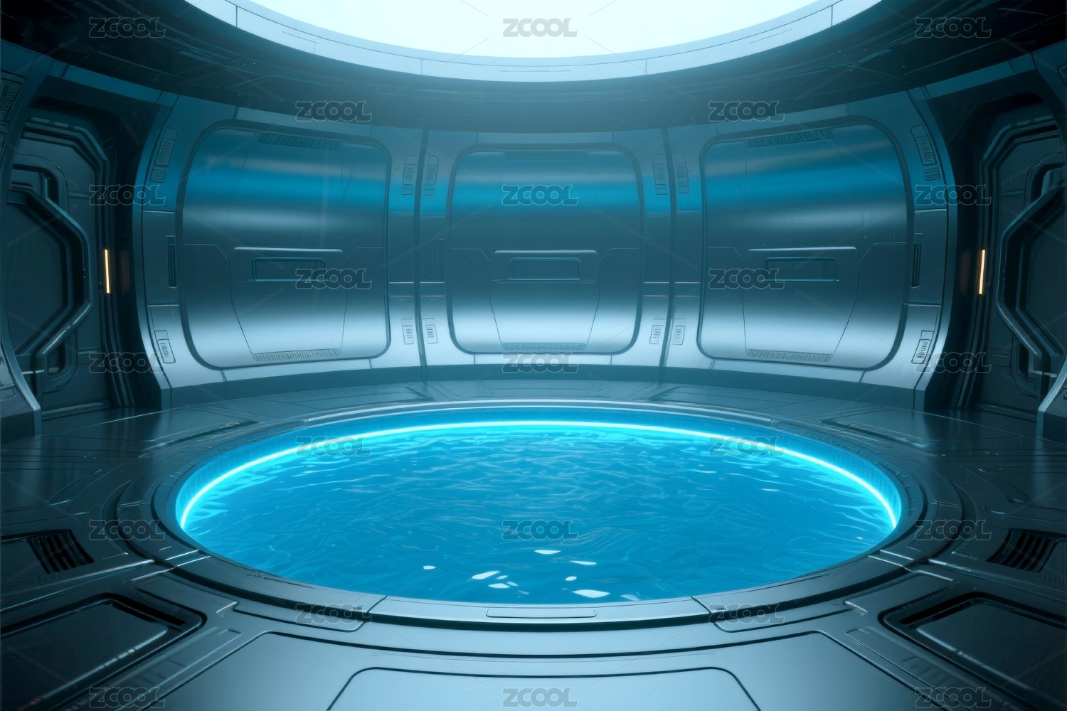 未来科技感蓝色水池环形空间设计
