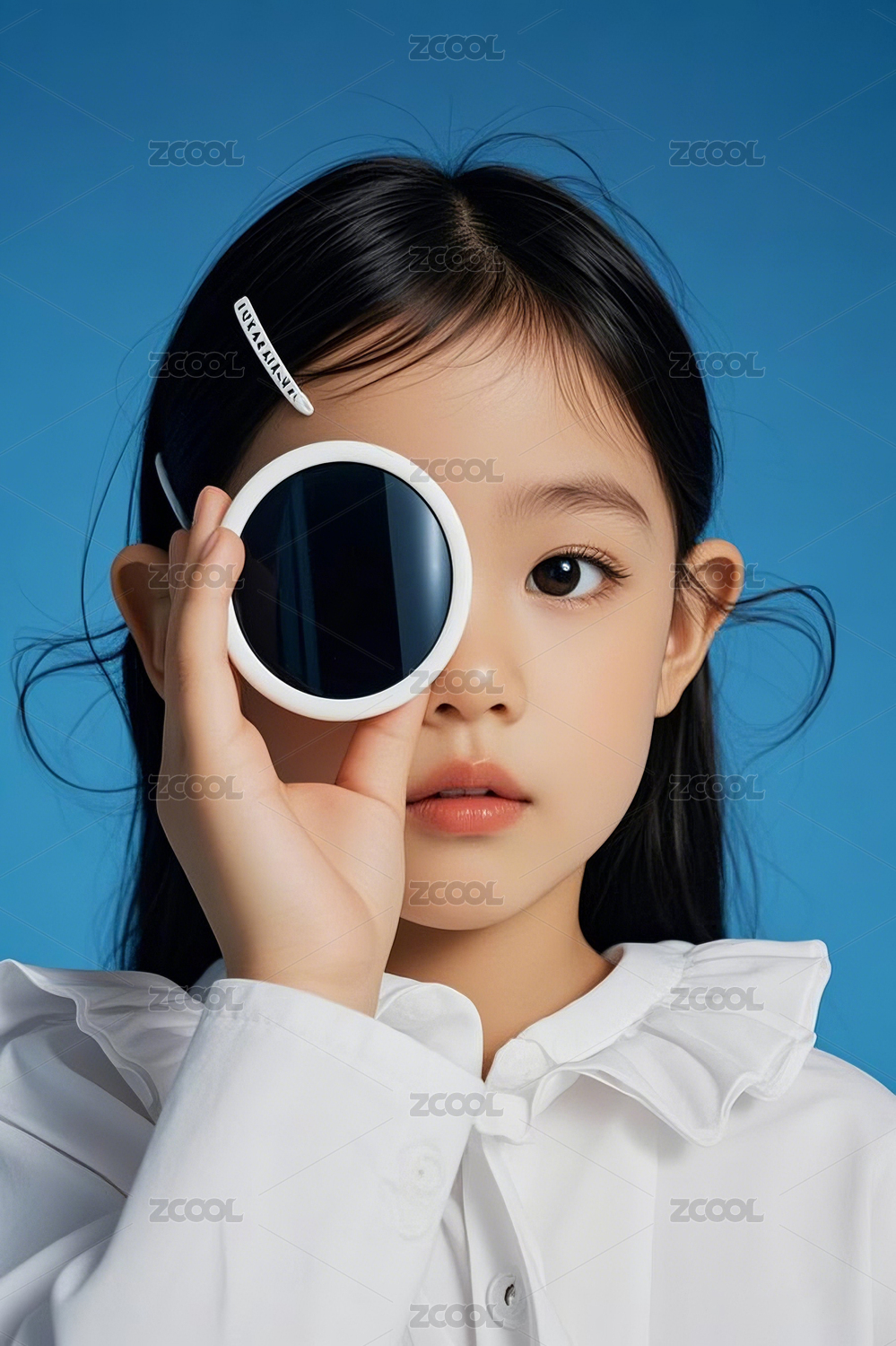 白色背景里的活泼可爱的中国小女孩(儿童)