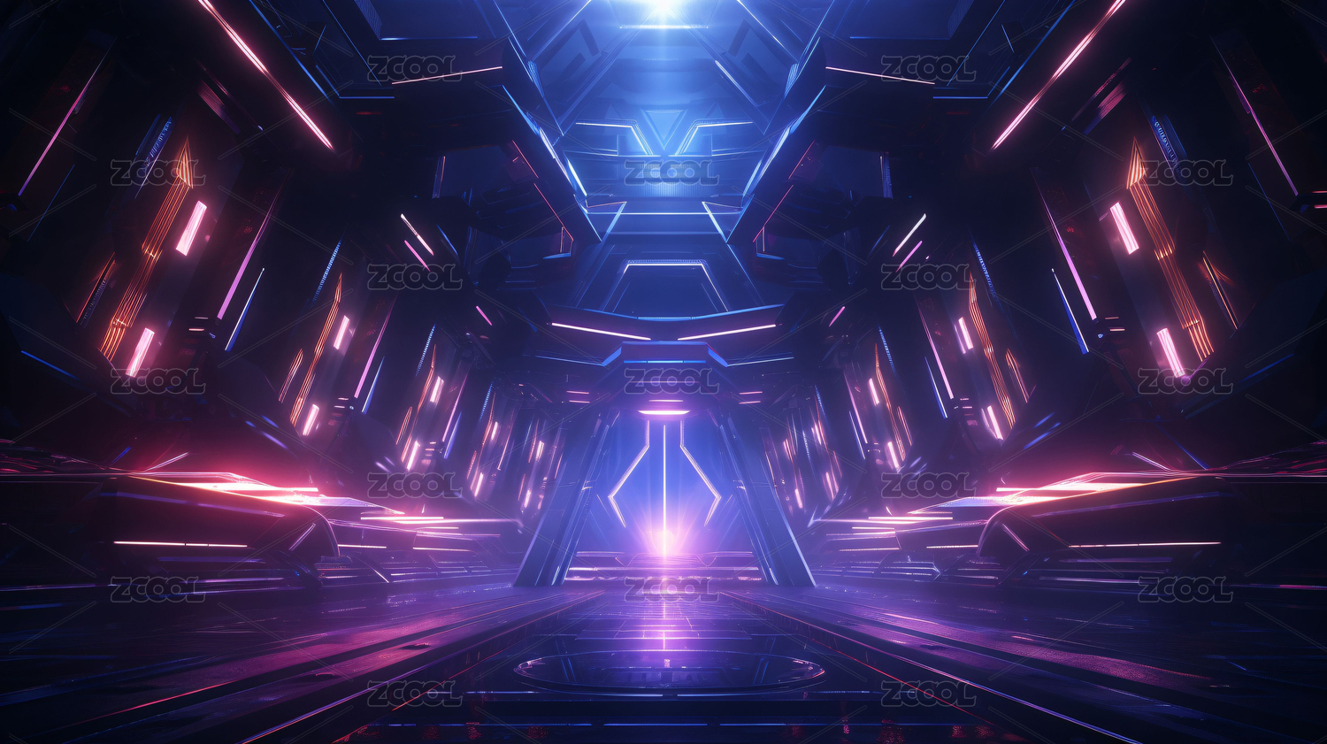 抽象霓虹灯矩阵科技感舞台,赛博朋克