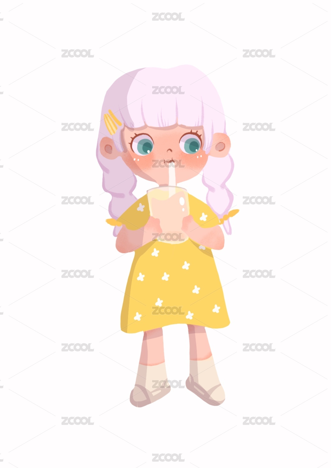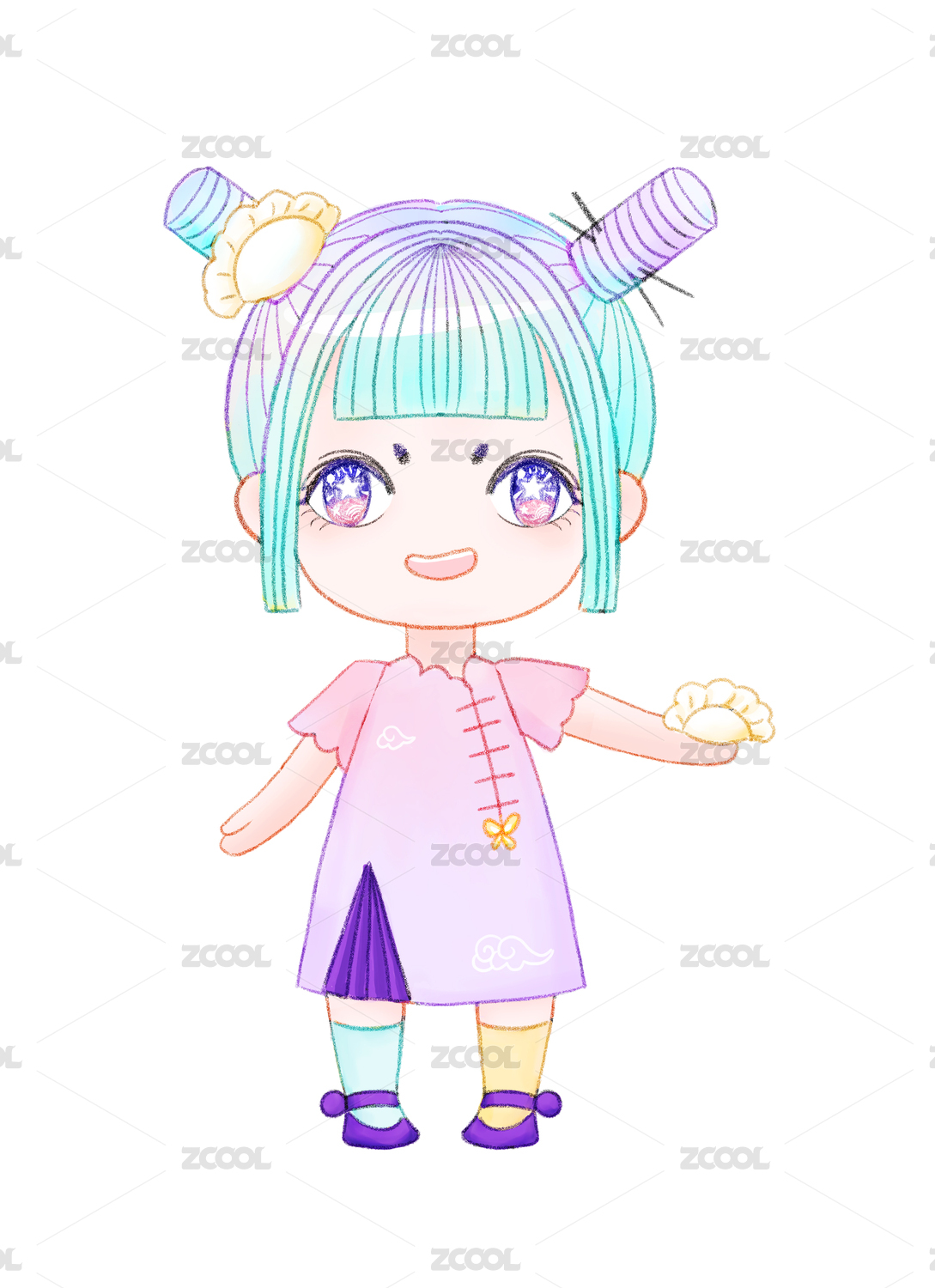 中餐食物拟人Q版可爱小女孩 手绘插画