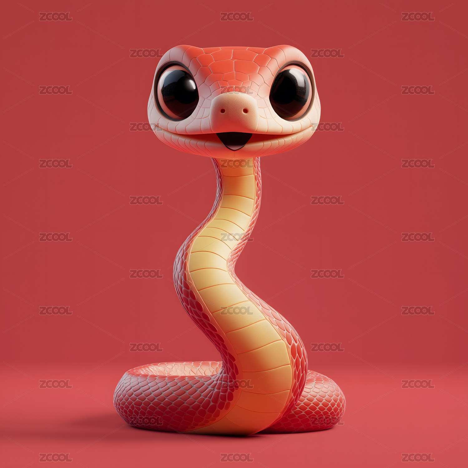 蛇,可爱,萌宠,DXCZ202403,蛇年,吉祥物,3D,帅气,红色背景,生肖