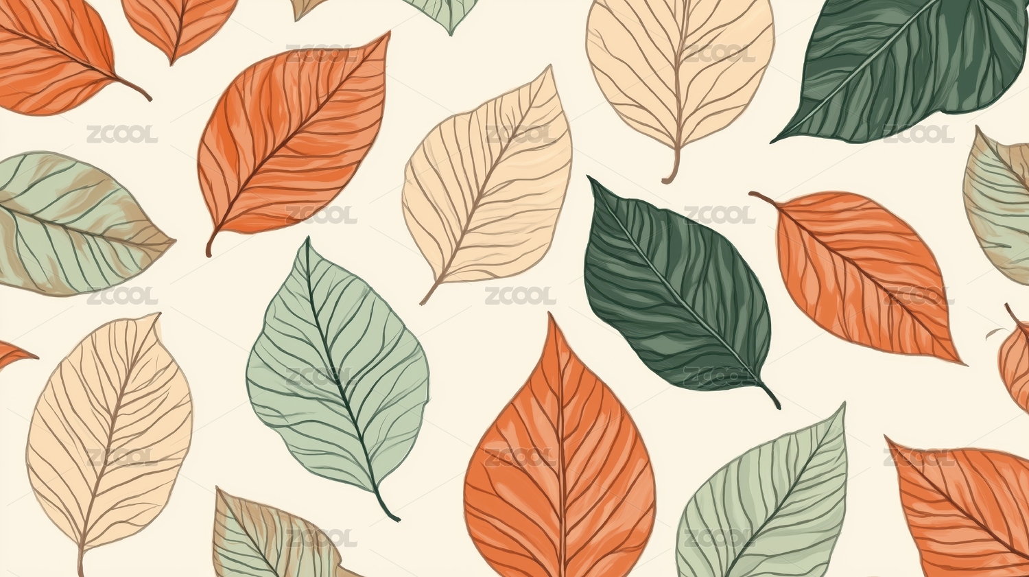 平铺彩色叶子红叶四方连续无缝循环扁平插画