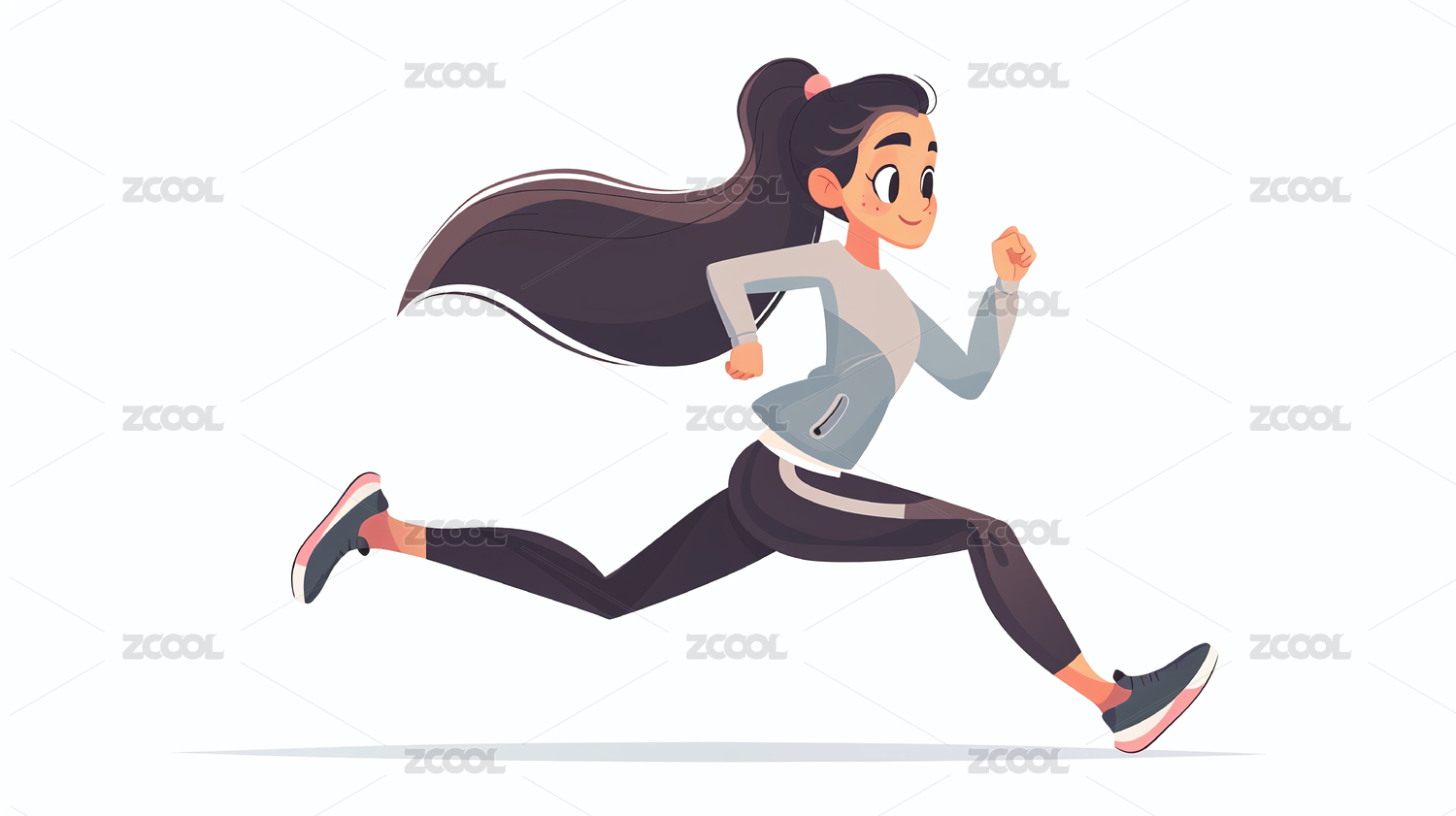 女孩,人物,女,女性,扁平,插画,女人,跑步,白色,背景