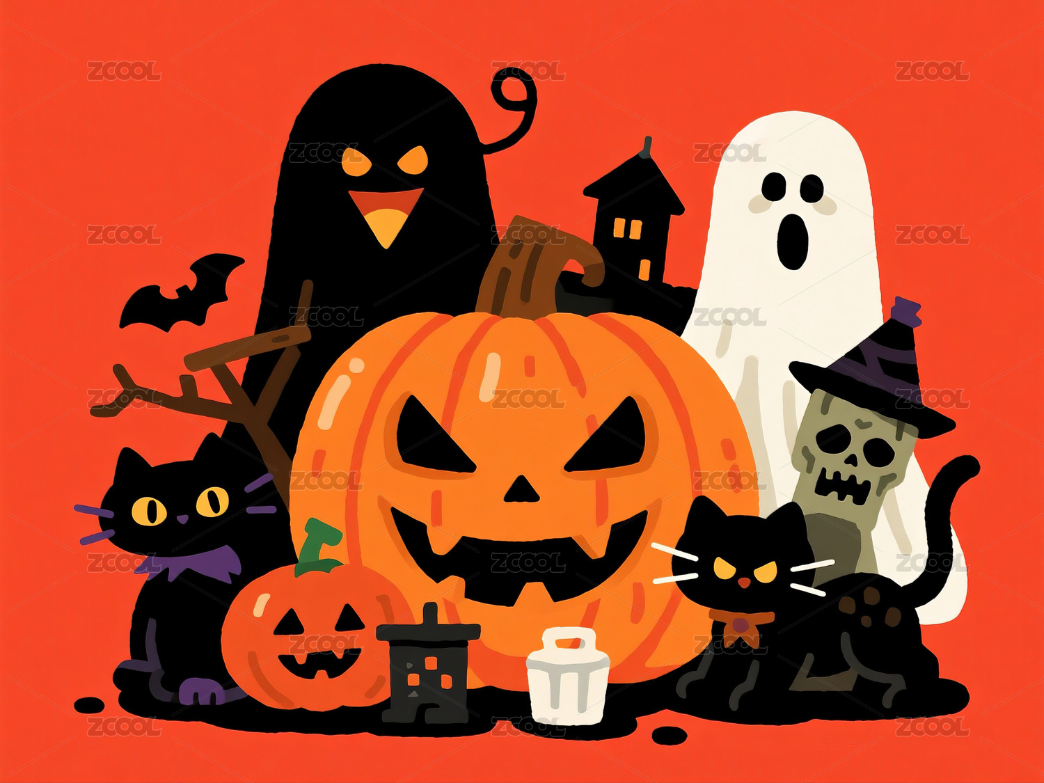 万圣节南瓜幽灵蝙蝠木乃伊女巫
