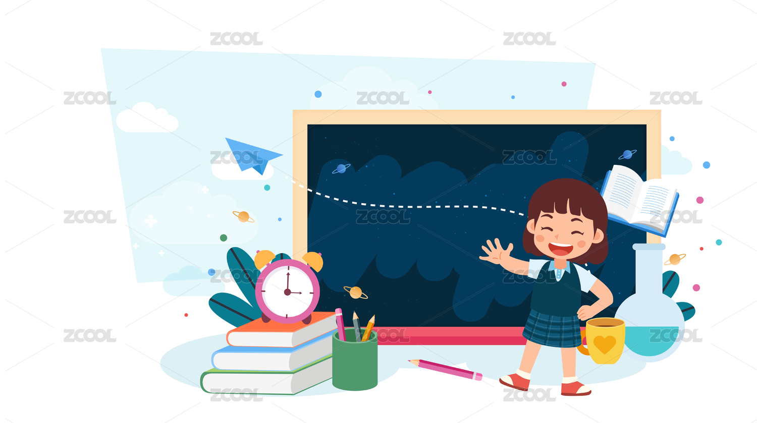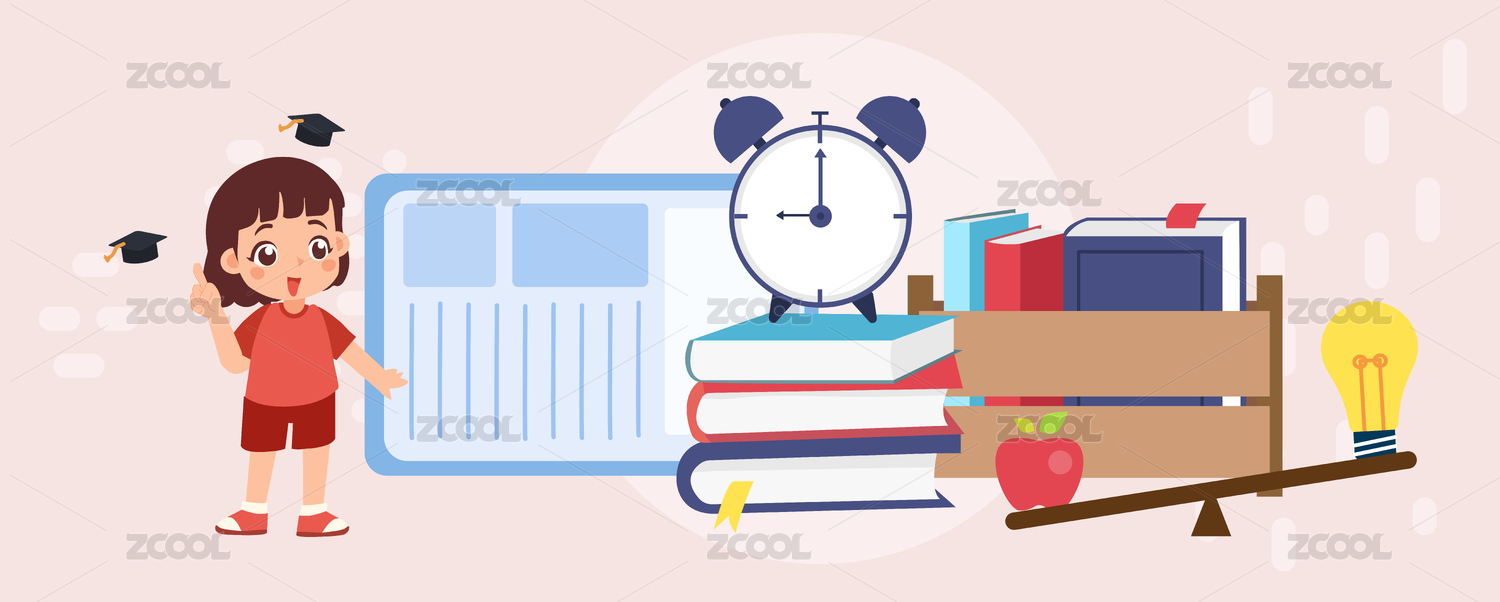 小人在书本地球仪博士帽跷跷板台灯前面走的